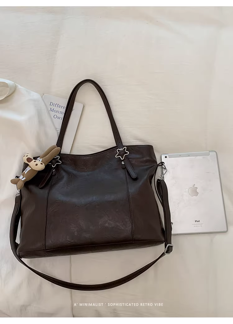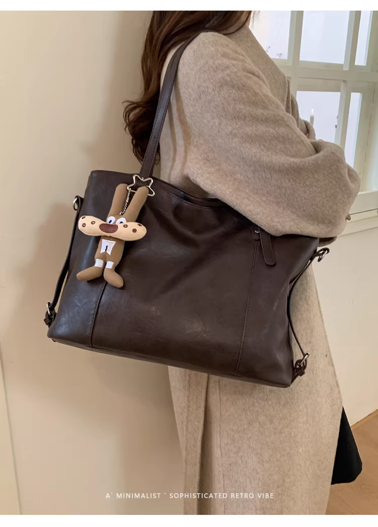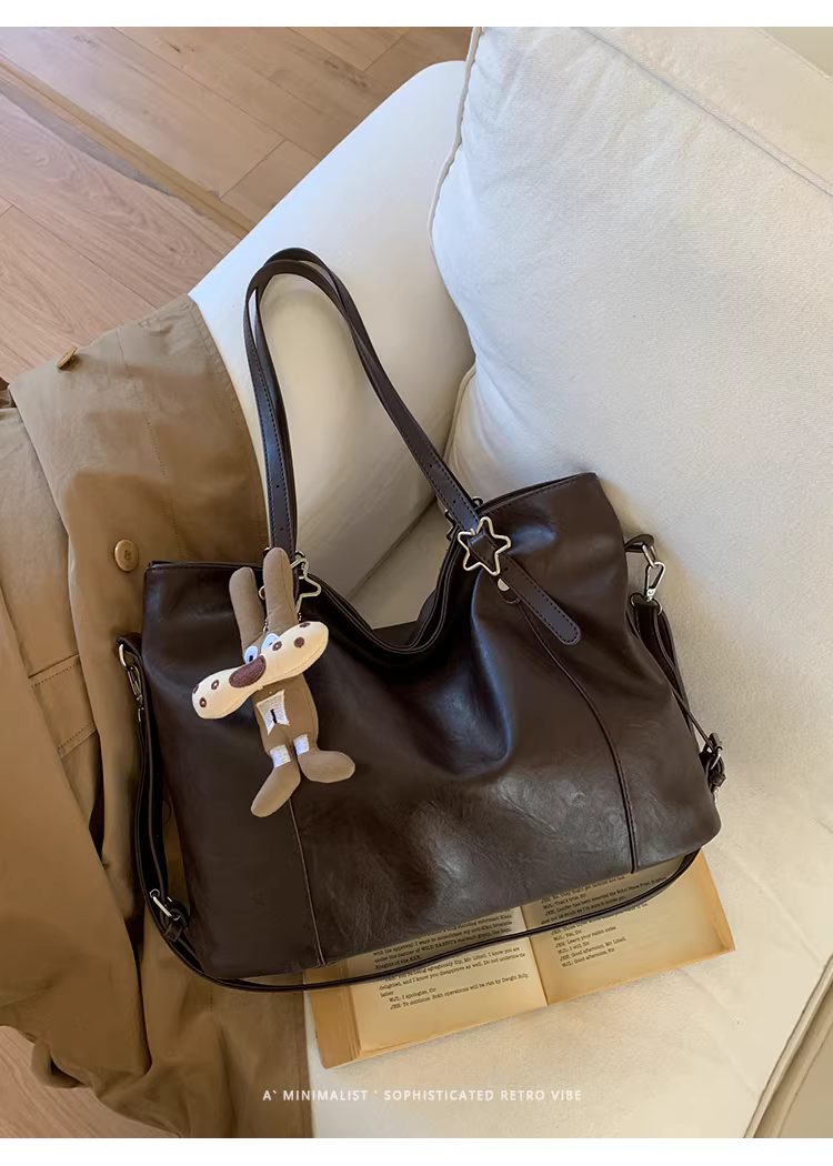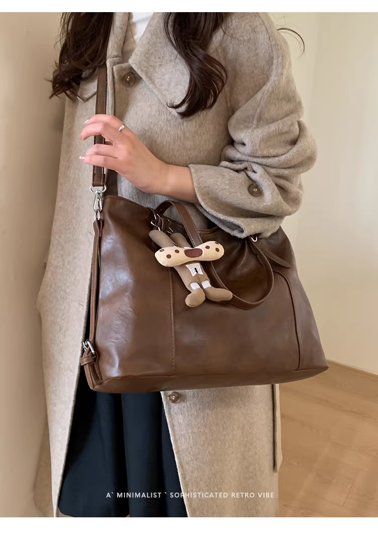 - Túi xách nữ cỡ lớn, phong cách retro thu đông 2025, đa năng, đeo vai, đeo chéo, túi tote học sinh, phong cách giản dị