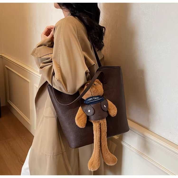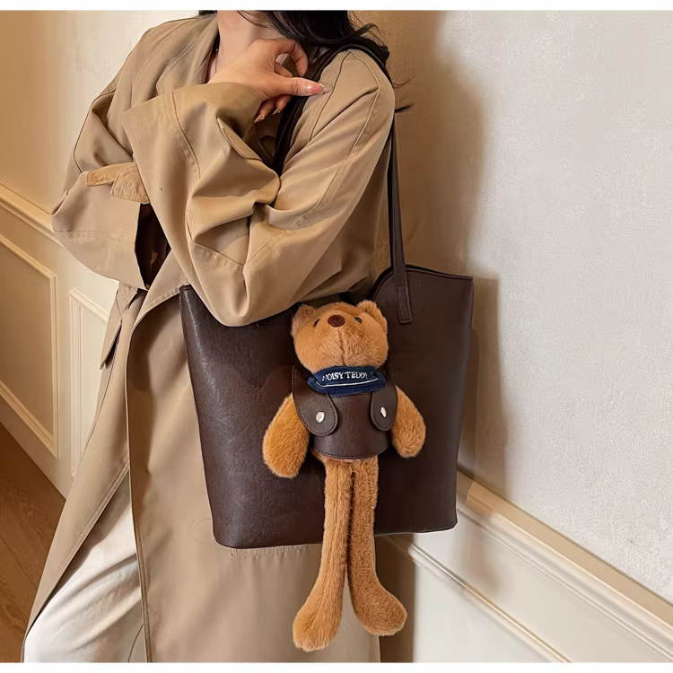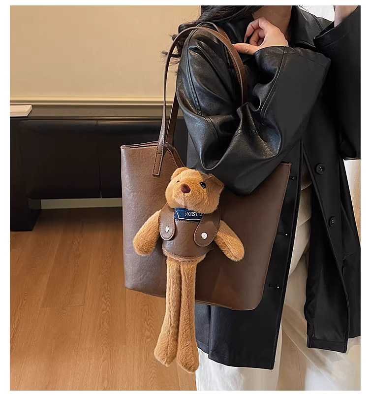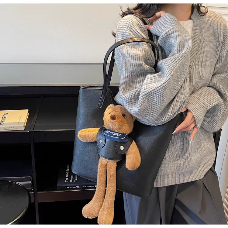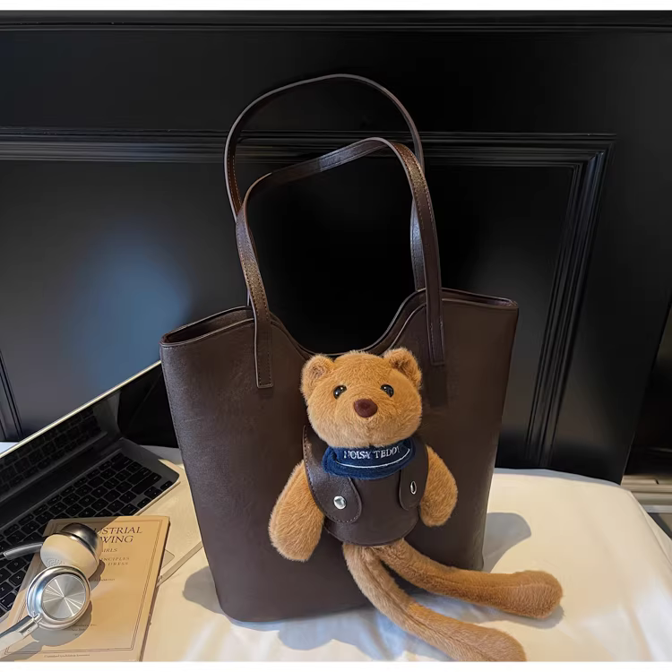- Túi xách nữ cỡ lớn, phong cách retro thu đông 2025, đa năng, hoạt hình dễ thương, đeo vai, túi tote đi học