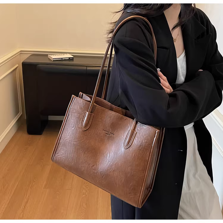 Túi xách nữ dung tích lớn, đa năng trong mùa thu đông, túi đeo vai kiểu retro mới năm 2025, đơn giản và có họa tiết, thích hợp làm túi tote đi làm và đi làm.