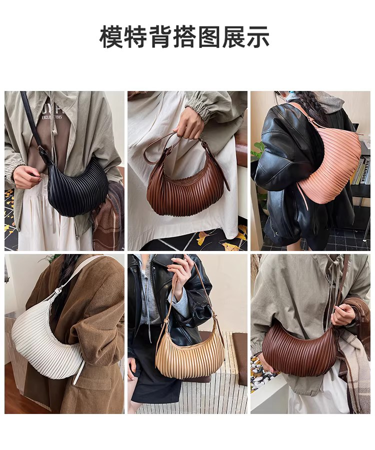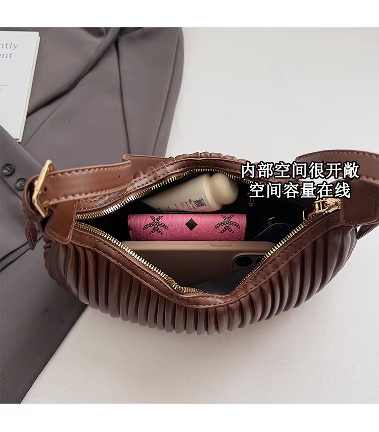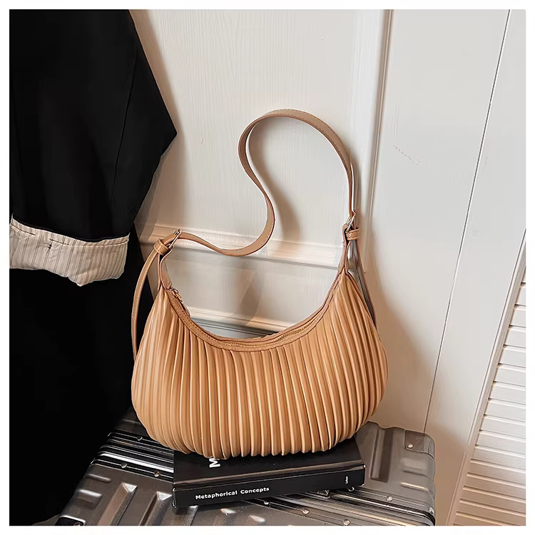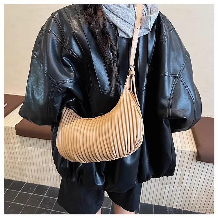- Túi xếp ly nữ, dung tích lớn, thiết kế độc đáo thu đông 2025, túi đeo chéo retro, túi đeo vai/nách kiểu bánh bao.