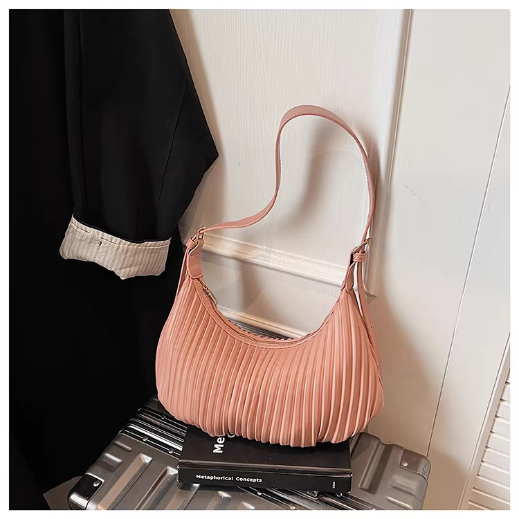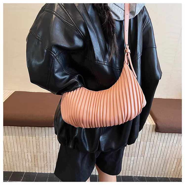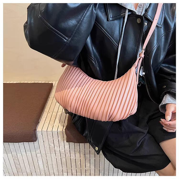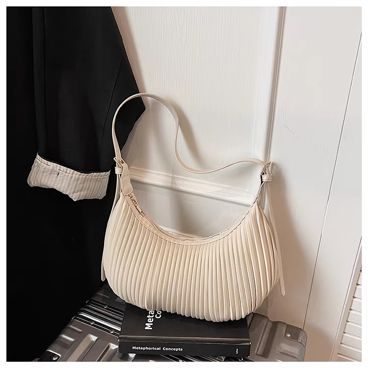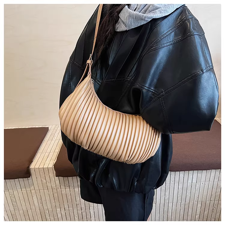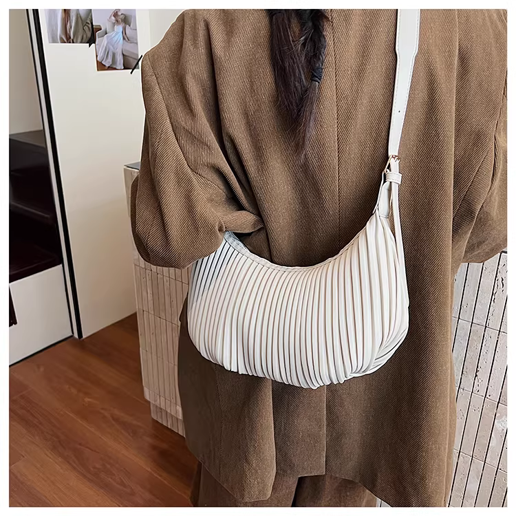 Túi xếp ly nữ, dung tích lớn, thiết kế độc đáo thu đông 2025, túi đeo chéo retro, túi đeo vai/nách kiểu bánh bao.