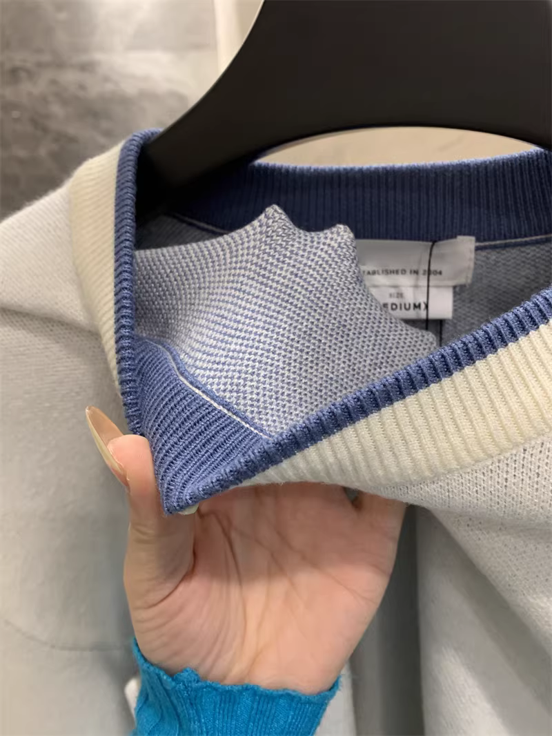 - Ưu đãi hàng ngày của Don Quixote! Áo len dệt kim cổ tròn viền màu, áo len đơn giản màu trơn dành cho nam.