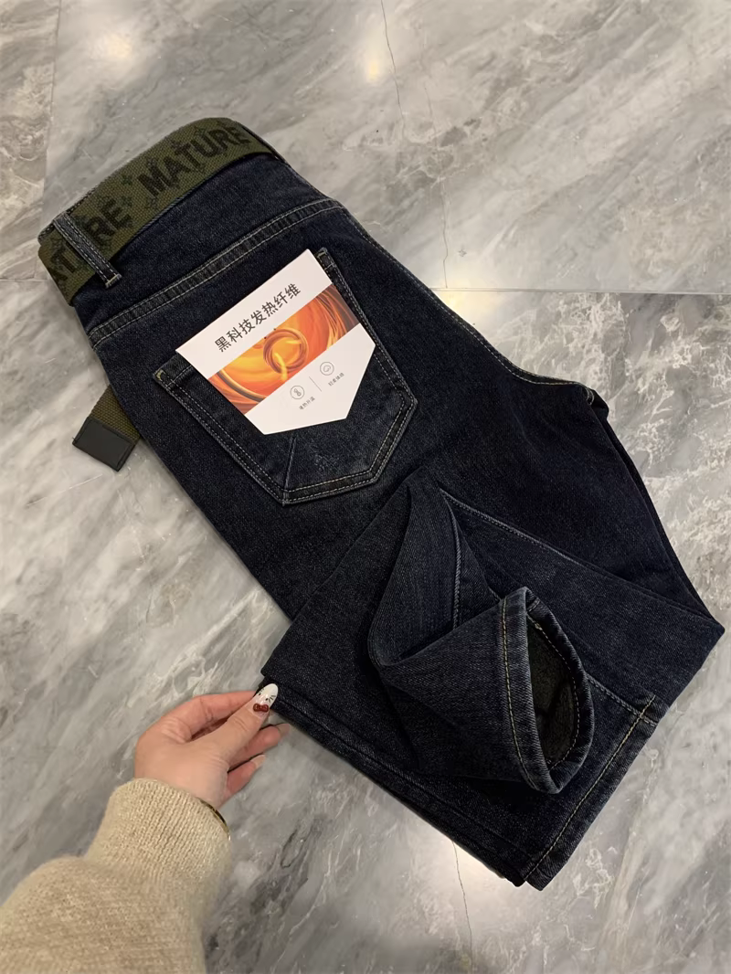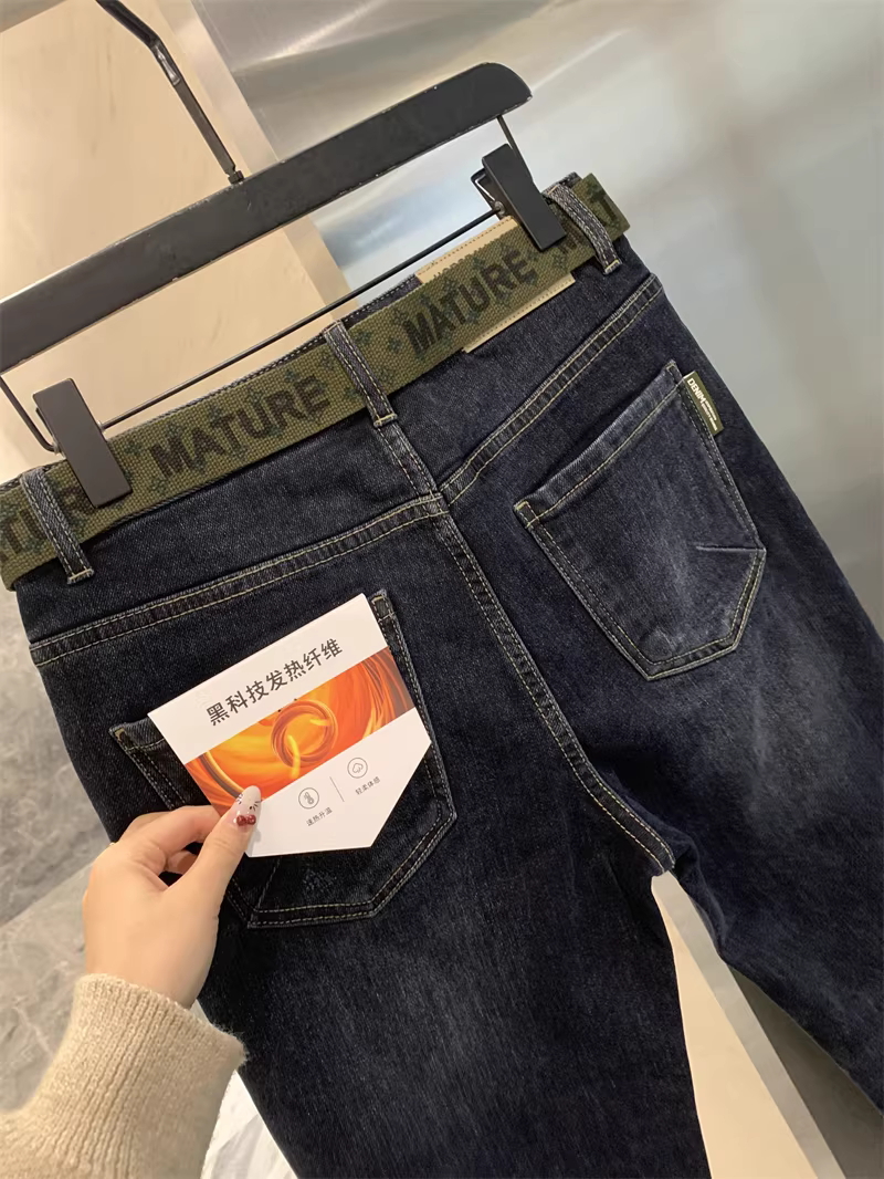 Ưu đãi hấp dẫn Don Quixote! Công nghệ sợi tạo nhiệt tiên tiến! Quần jean nam ống đứng có dây lưng hợp thời trang mùa đông.