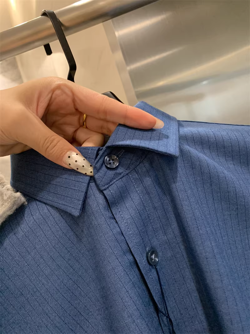 - Ưu điểm của bộ sưu tập Don Quixote Mon! Họa tiết dọc tối màu! Áo sơ mi nam có cổ, lót lông cừu ấm áp mùa thu đông.