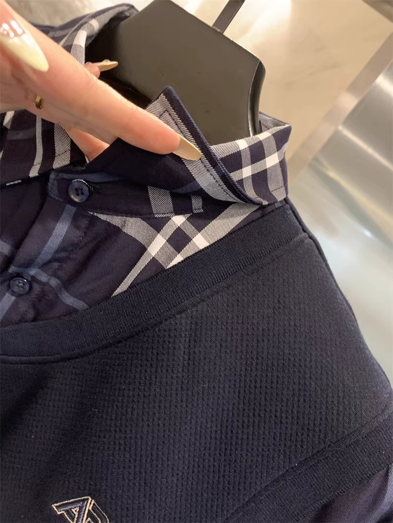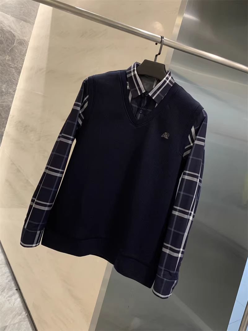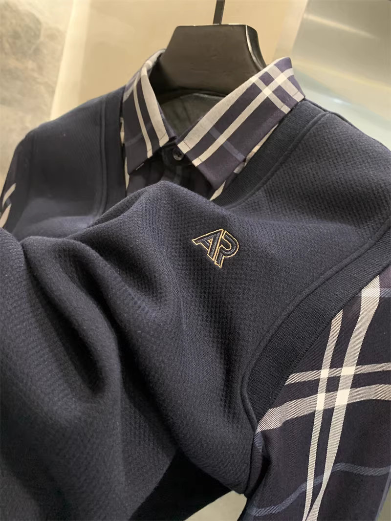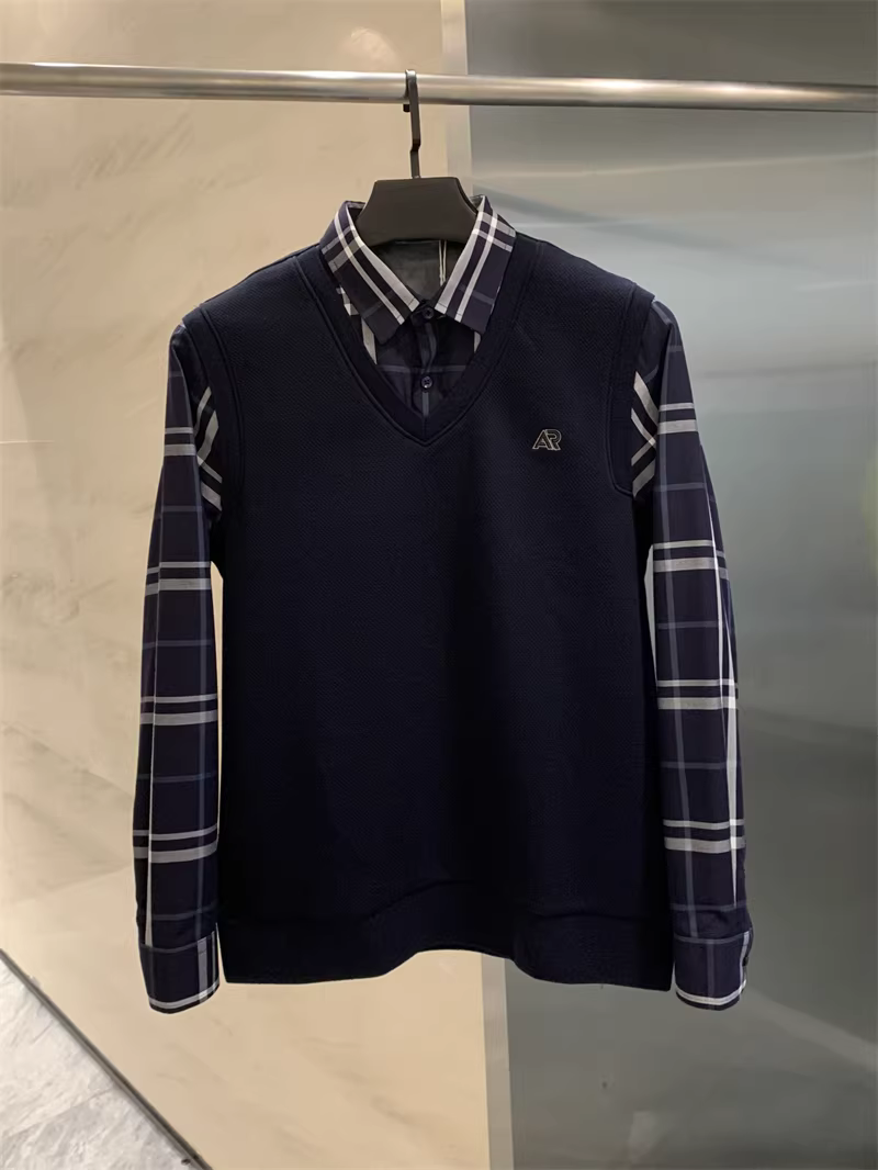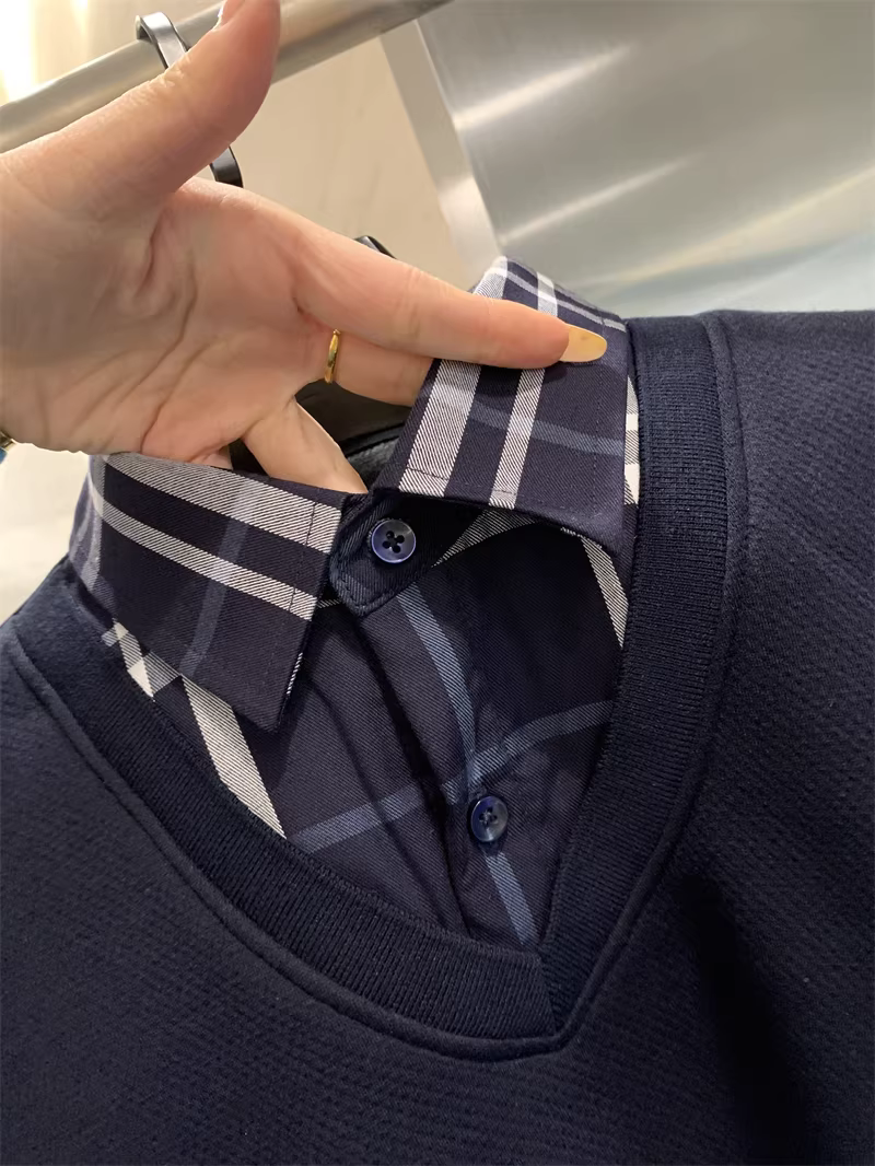 Ưu điểm của thương hiệu Don Quixote H! Lót lông cừu để giữ ấm! Áo len dệt kim giả hai mảnh có cổ kép kẻ sọc mùa thu đông.