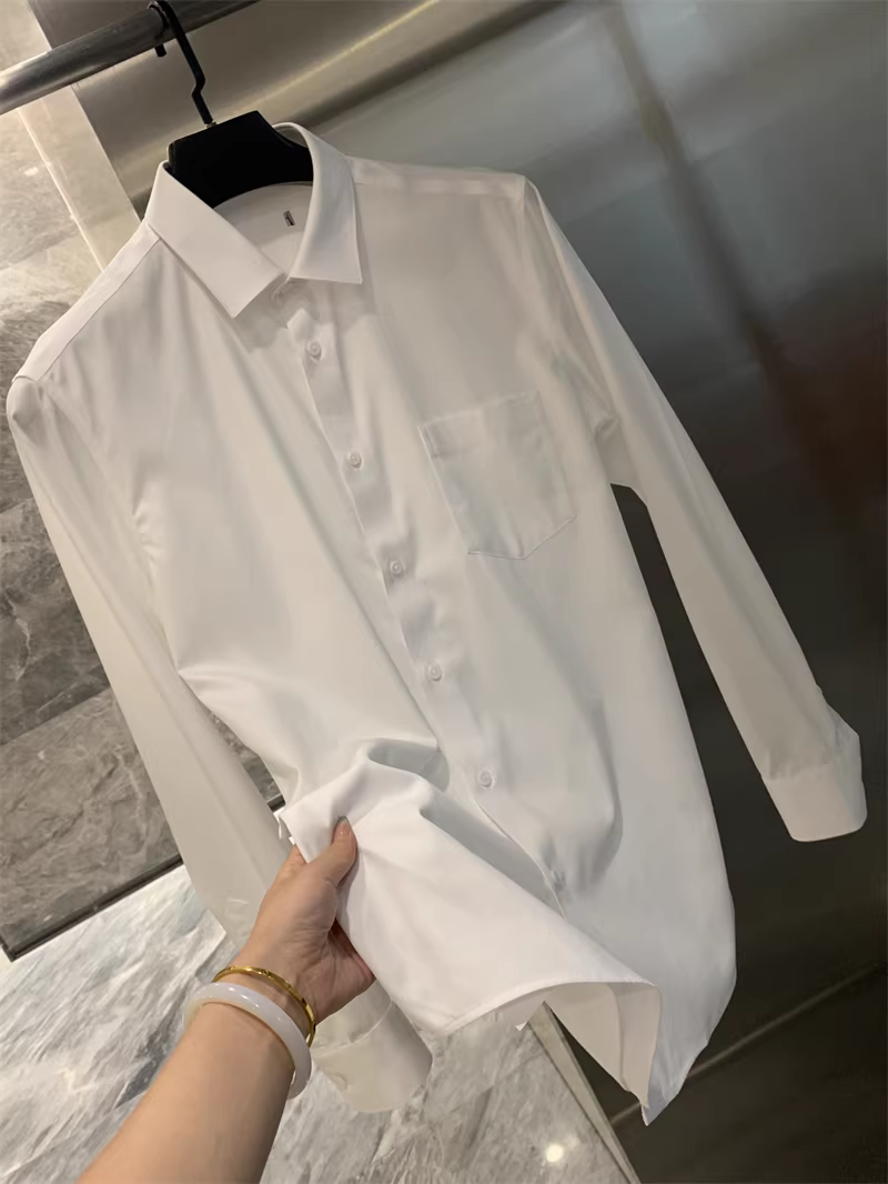 Ưu điểm của vải Lyocell Don Quixote! Mềm mại và thoáng khí! Áo sơ mi dài tay màu trơn, đa năng, phong cách thường ngày dành cho nam.