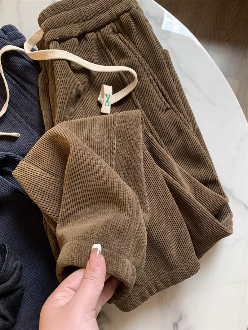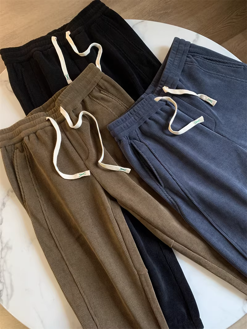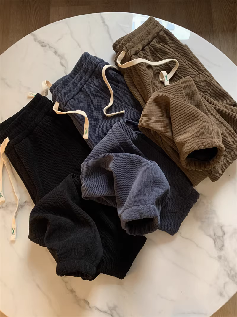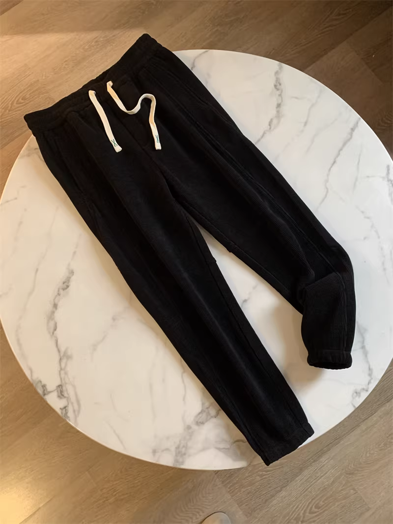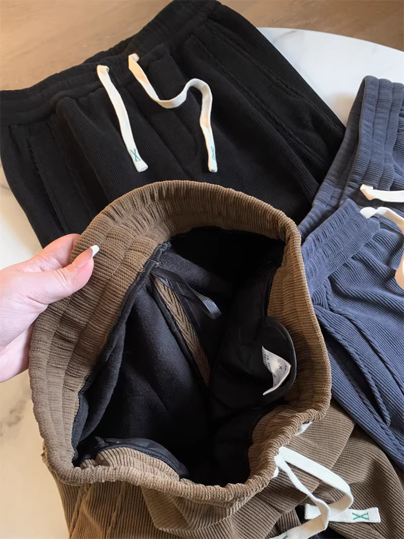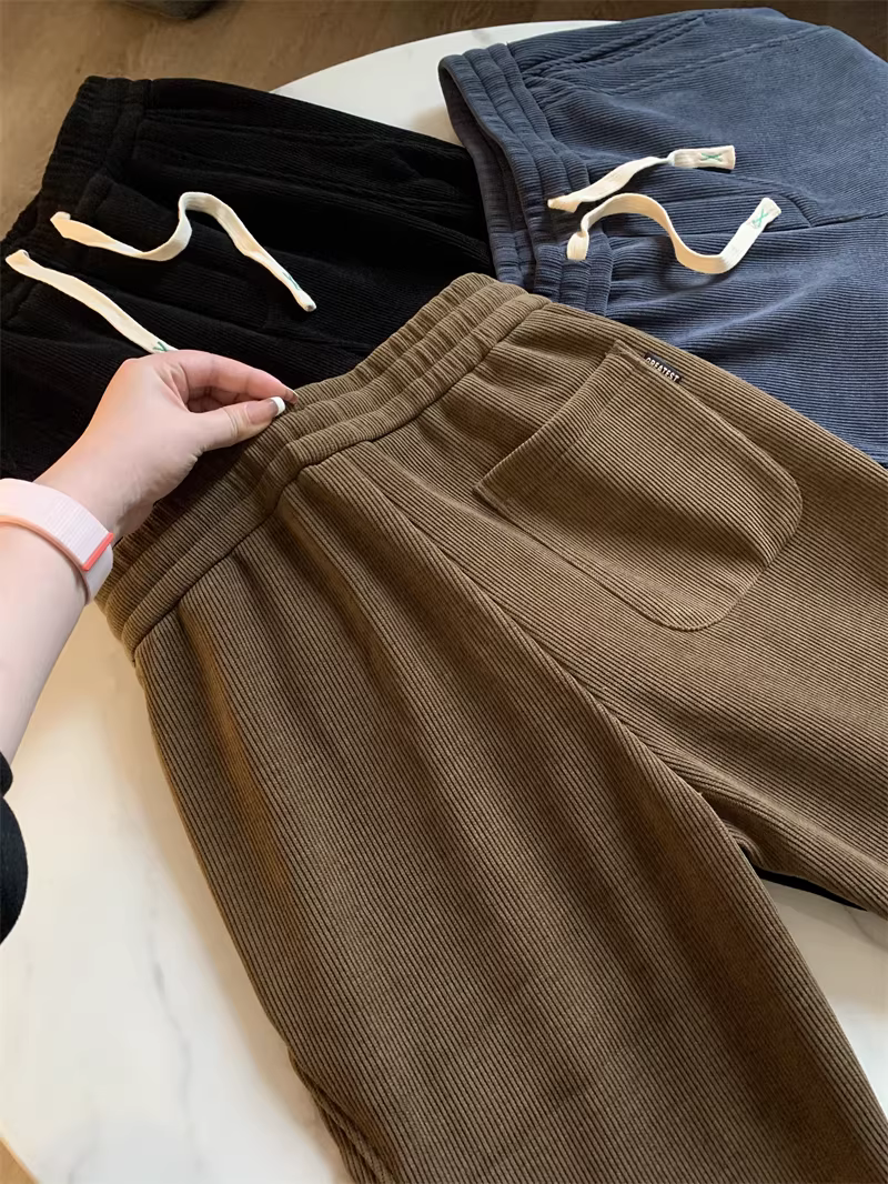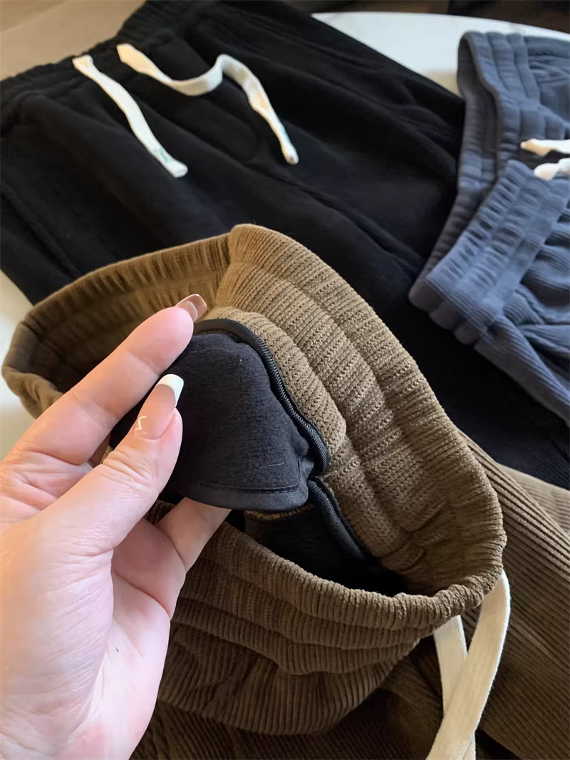 Vải chenille mới của Don Quixote! Quần âu nam có lót lông cừu, lưng thun, mặc mùa thu đông, quần ấm áp.