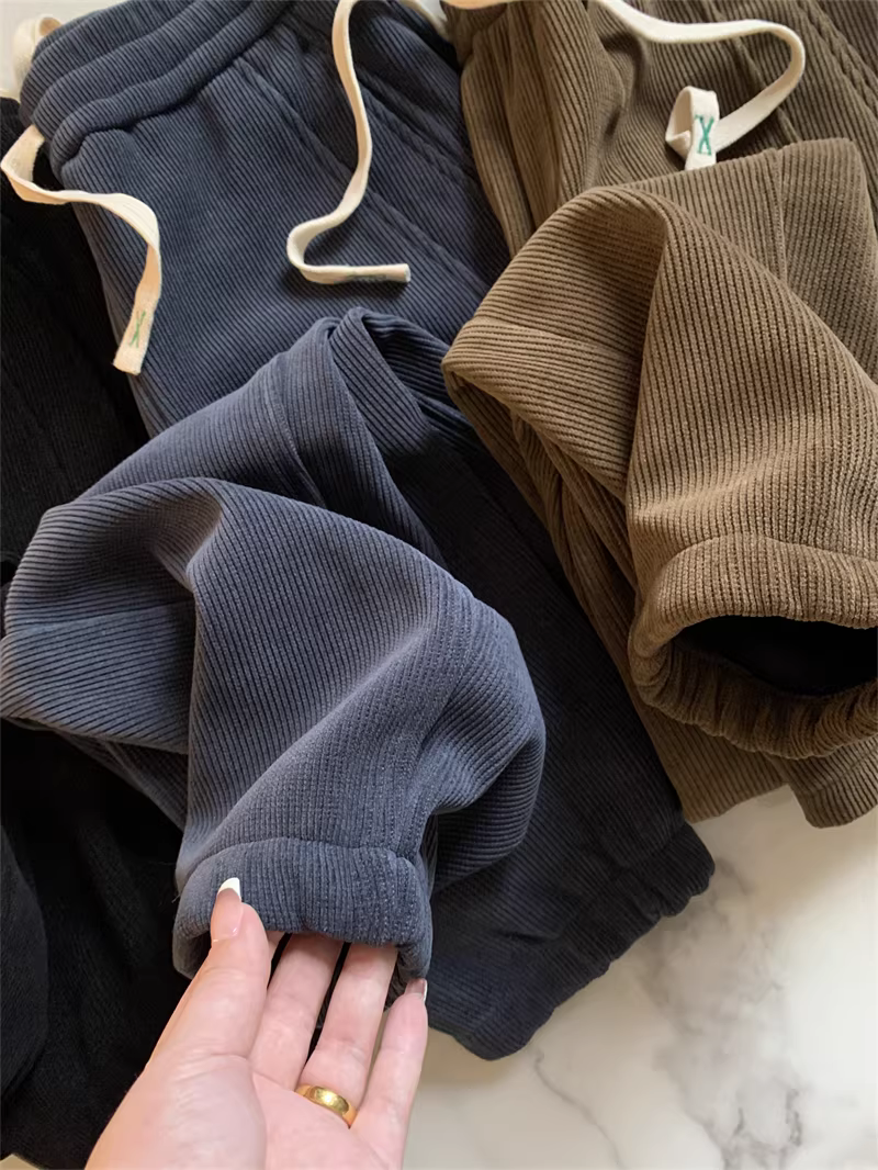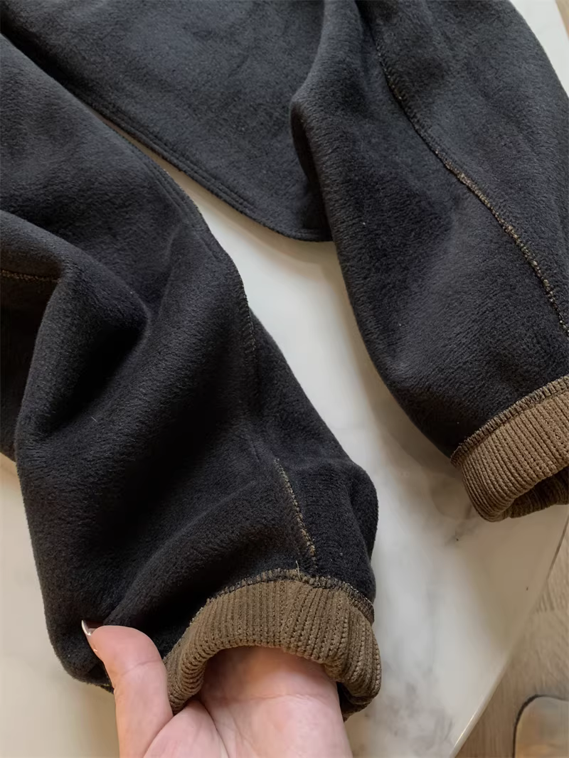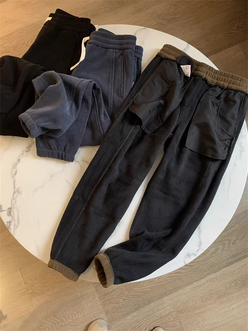 - Vải chenille mới của Don Quixote! Quần âu nam có lót lông cừu, lưng thun, mặc mùa thu đông, quần ấm áp.