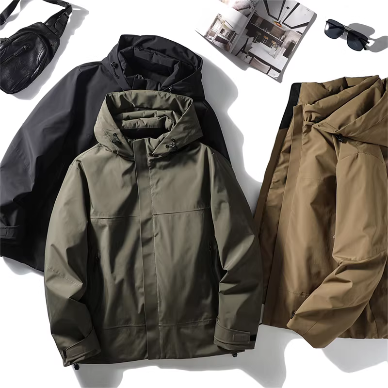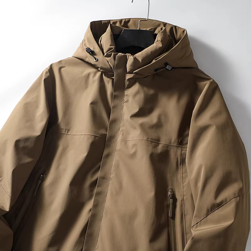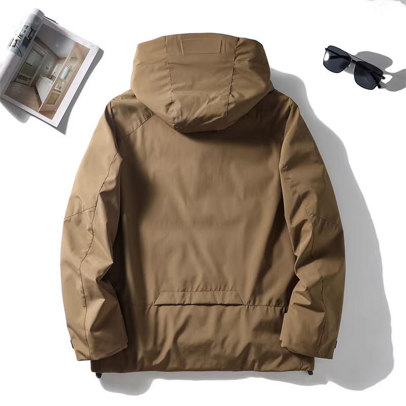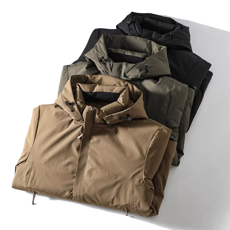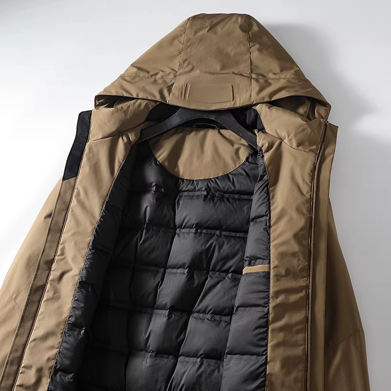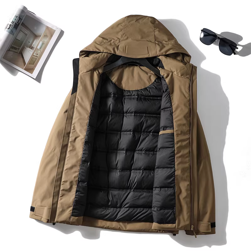 Vải ngoài trời ba lớp chống thấm Don Quixote! 90% lông vịt, mềm mại và ấm áp! Áo khoác phao có mũ thời trang dành cho nam mùa đông.