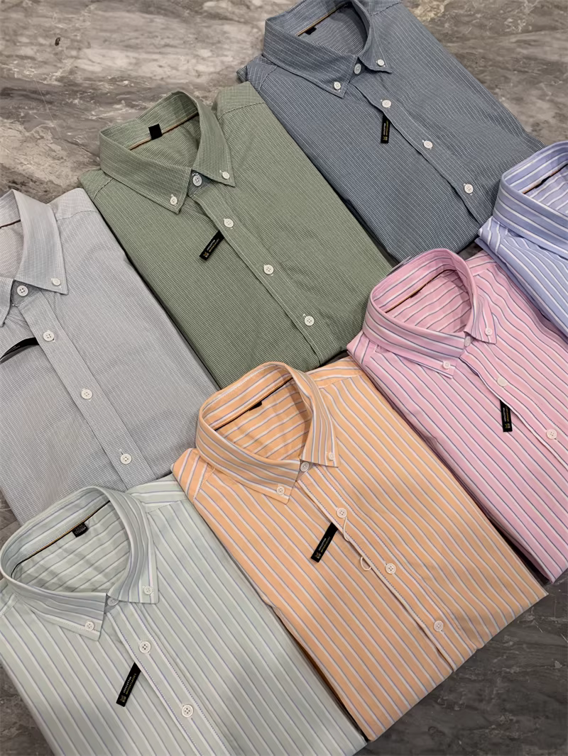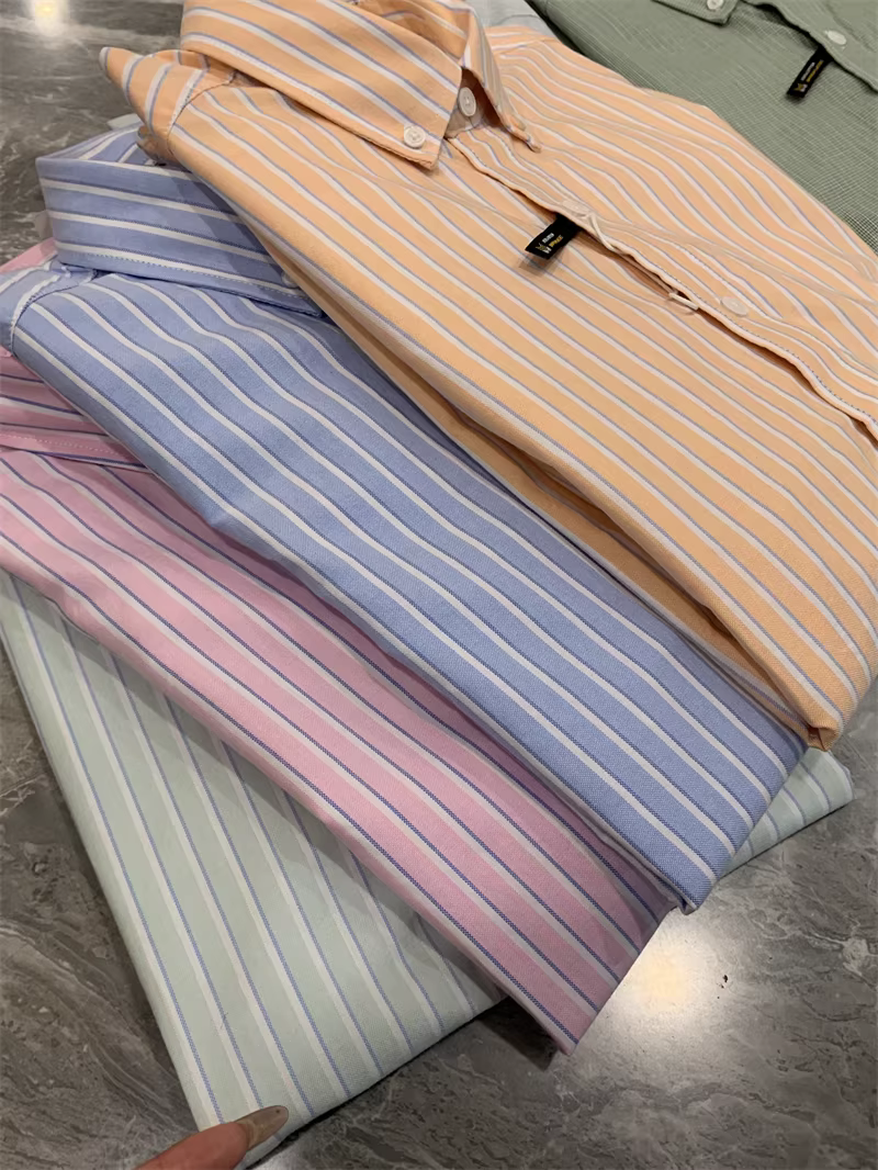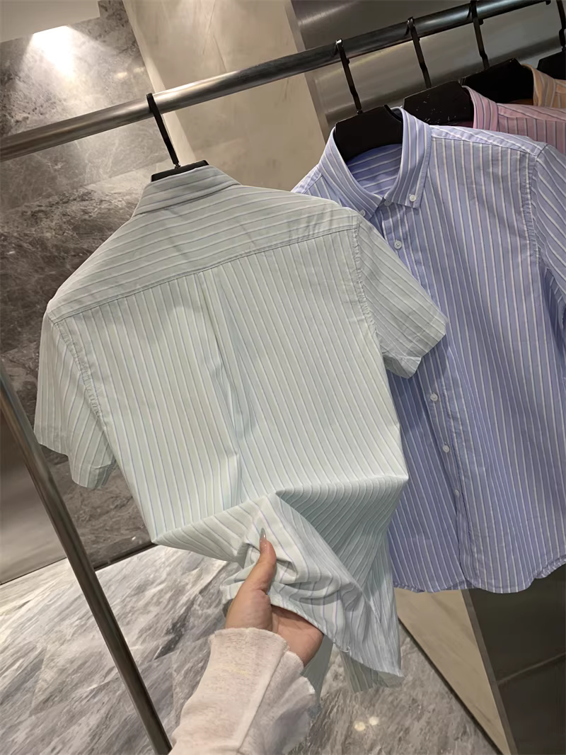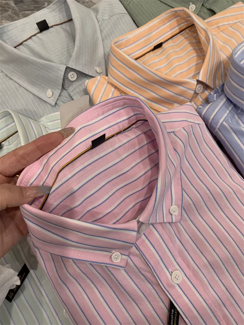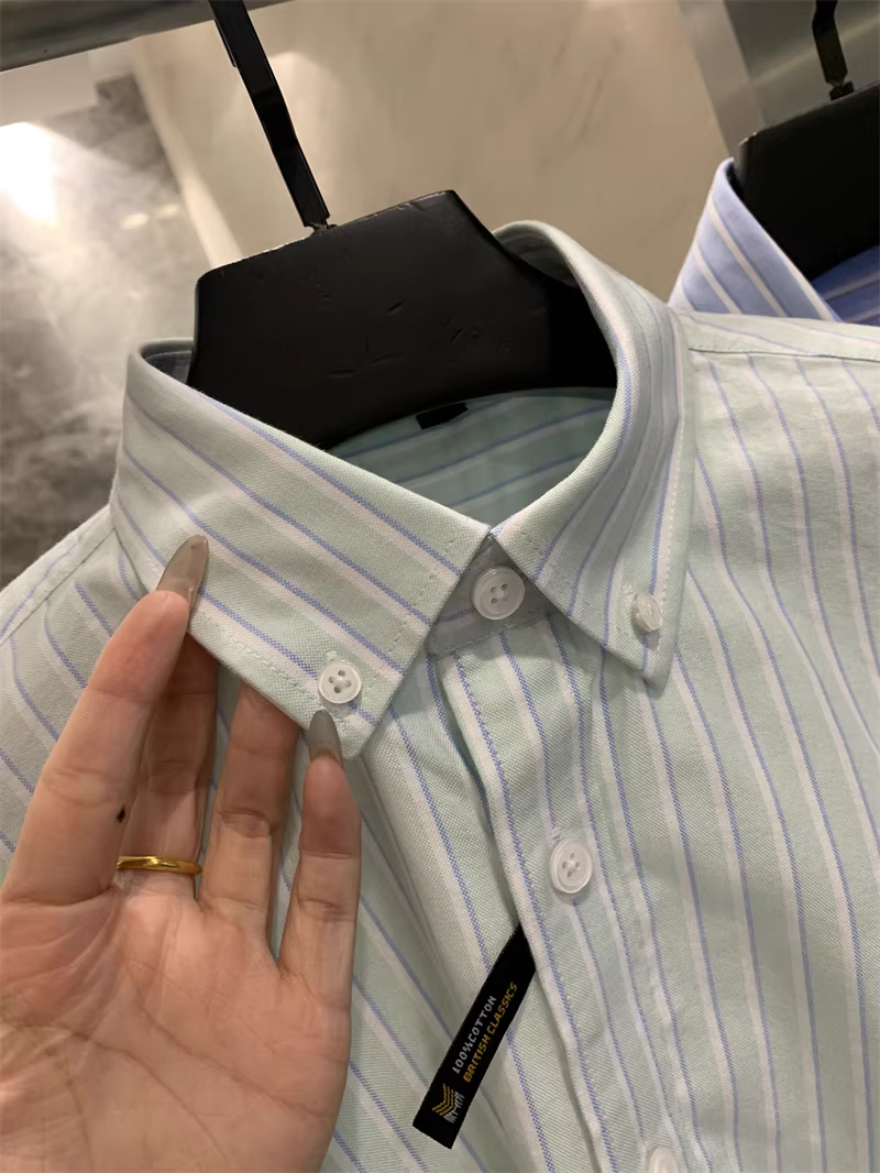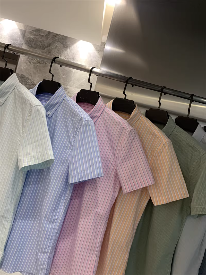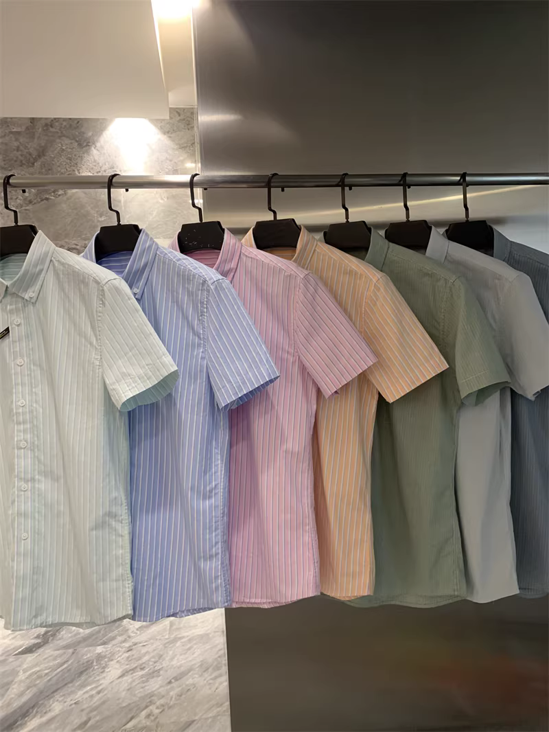- Vải oxford 100% cotton đã qua xử lý! Áo sơ mi ngắn tay họa tiết sọc dọc/kẻ sọc dành cho nam và nữ mùa hè hợp thời trang