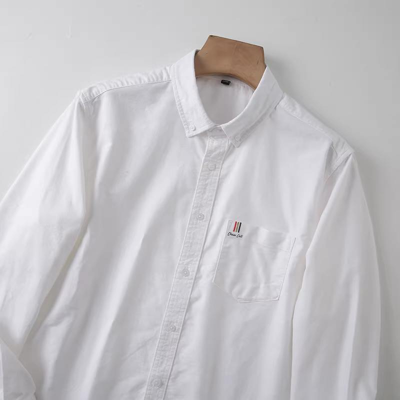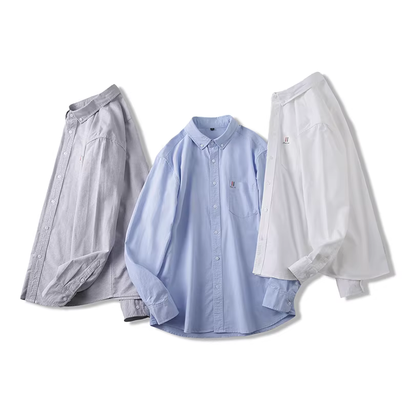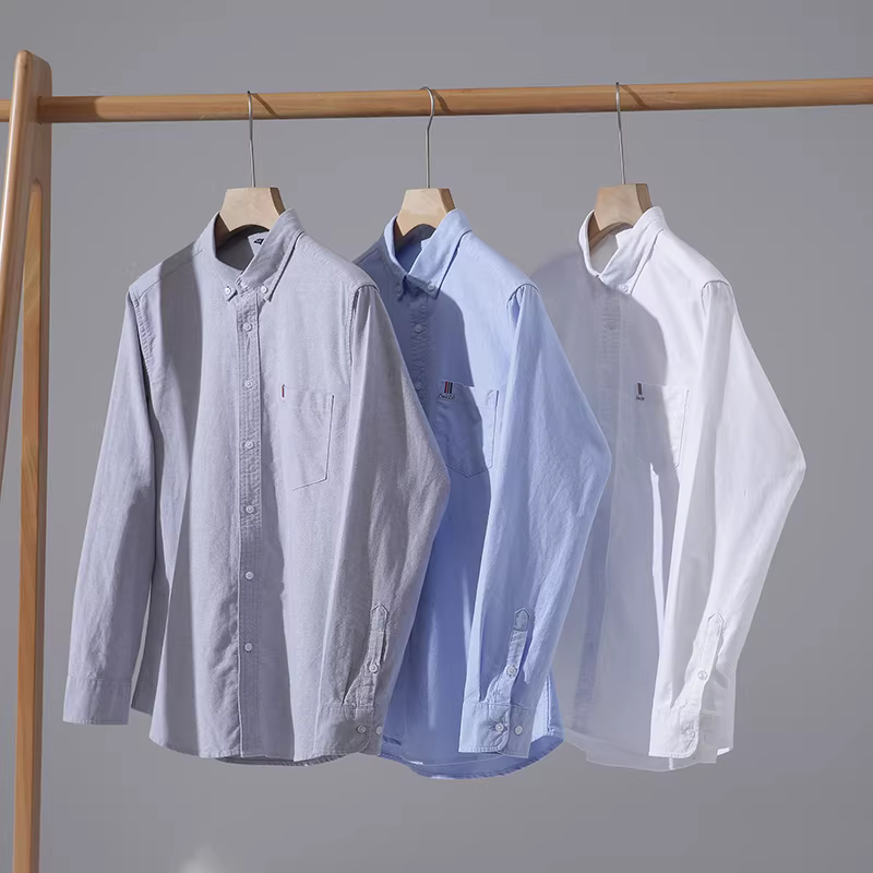 Vải oxford cotton nguyên chất Don Quixote! Đơn giản và đa năng, chống nhăn, giản dị, đa năng, áo sơ mi dài tay có cổ, hợp thời trang.