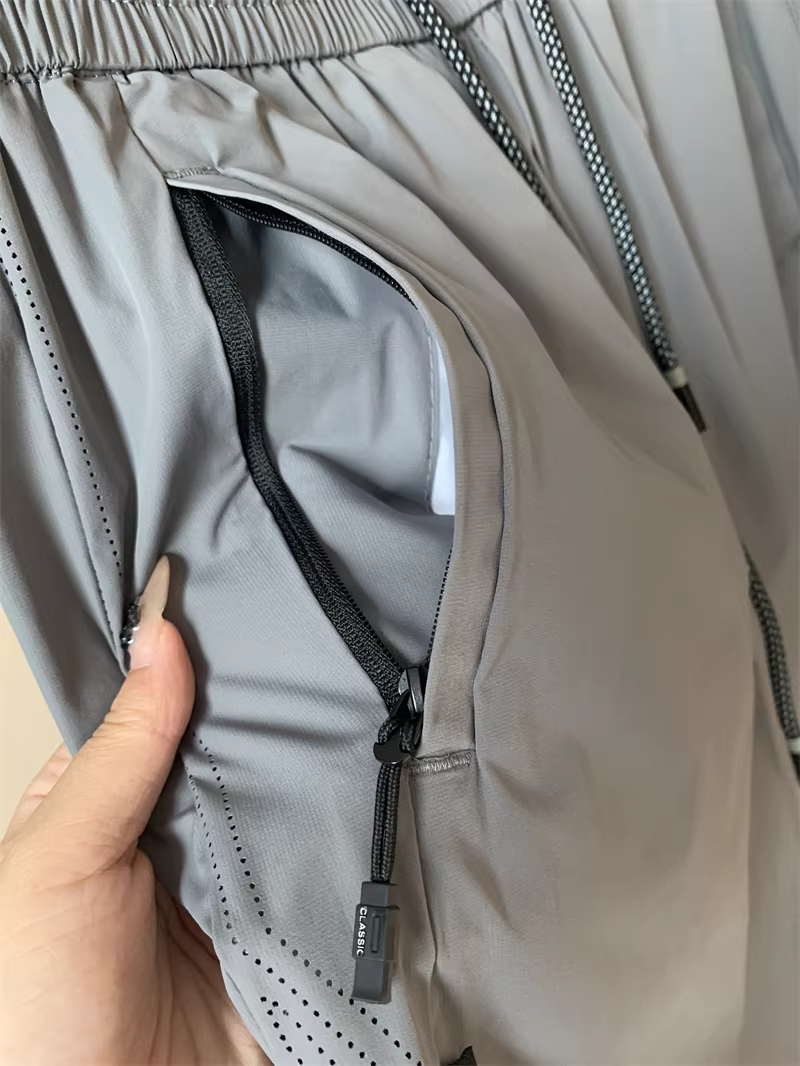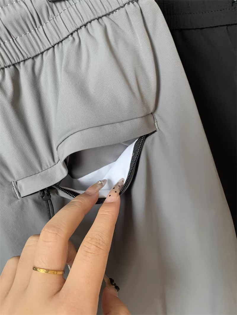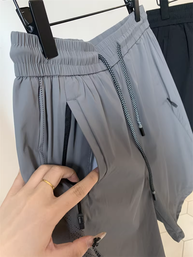 - Vải thun nhanh khô Don Quixote! Nhẹ và thoáng khí! Quần short thẳng lưng thun co giãn năm phần dành cho nam.