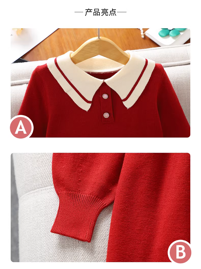 - Váy áo len mùa đông cho bé gái 2025, mẫu mới, váy thu đông trẻ em, váy công chúa đỏ ren cổ trụ cho bé lớn
