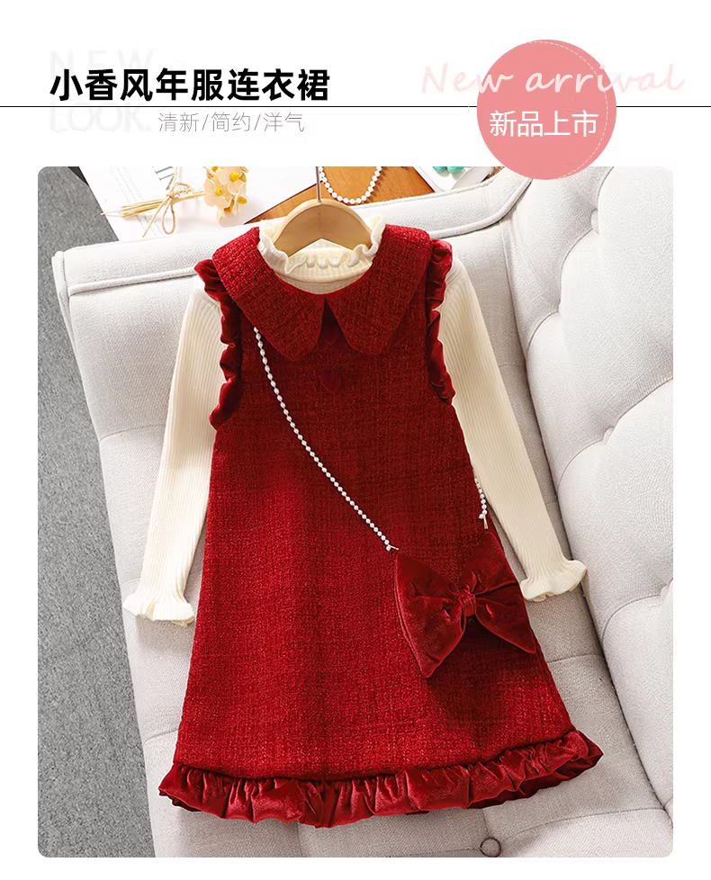 - Váy bé gái cho mùa thu đông, trang phục Tết 2025, váy Tết kiểu Chanel cho bé gái, bộ trang phục Tết cho trẻ em.