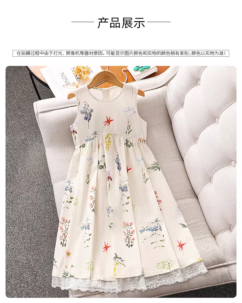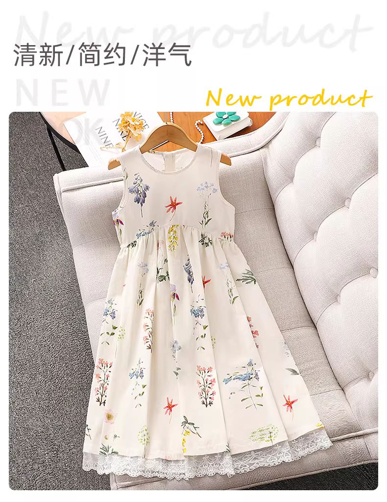 Váy bé gái hè 2025 kiểu mới, váy công chúa ren trẻ em, váy hoa kiểu vest