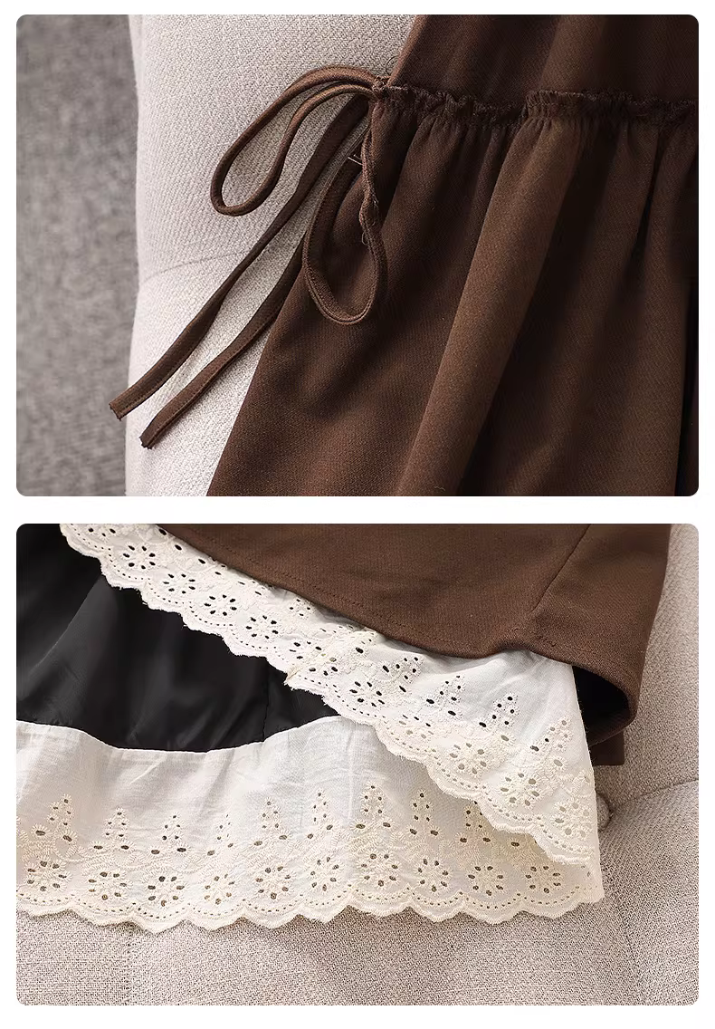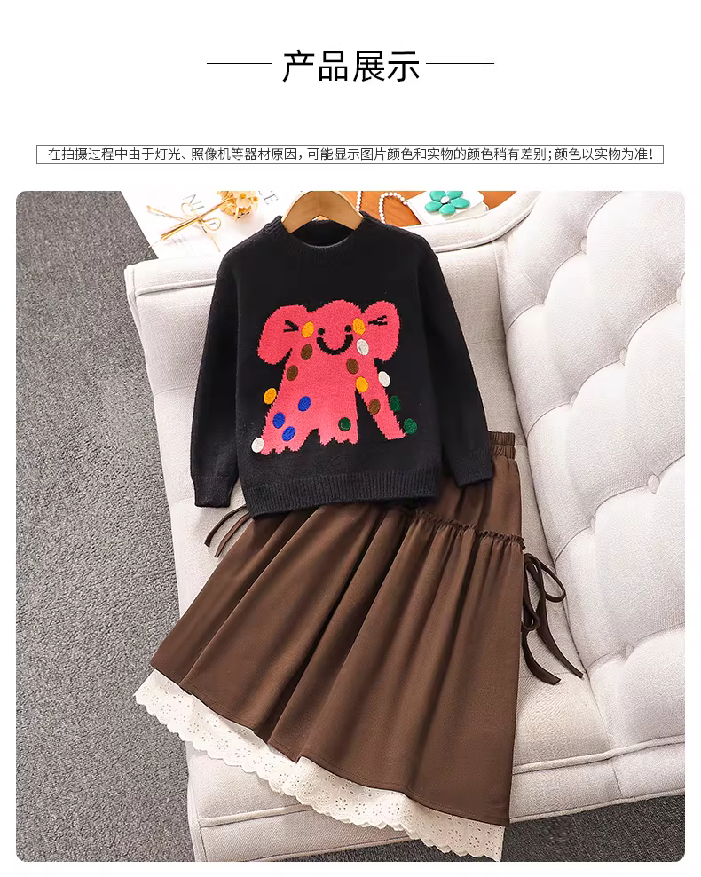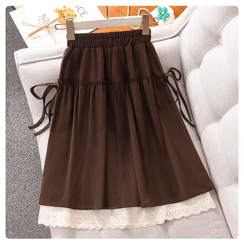 - Váy bé gái xuân thu 2025, quần áo trẻ em mới, kiểu dáng ôm dáng, váy chữ A, váy ren nửa thân cho bé gái mùa thu