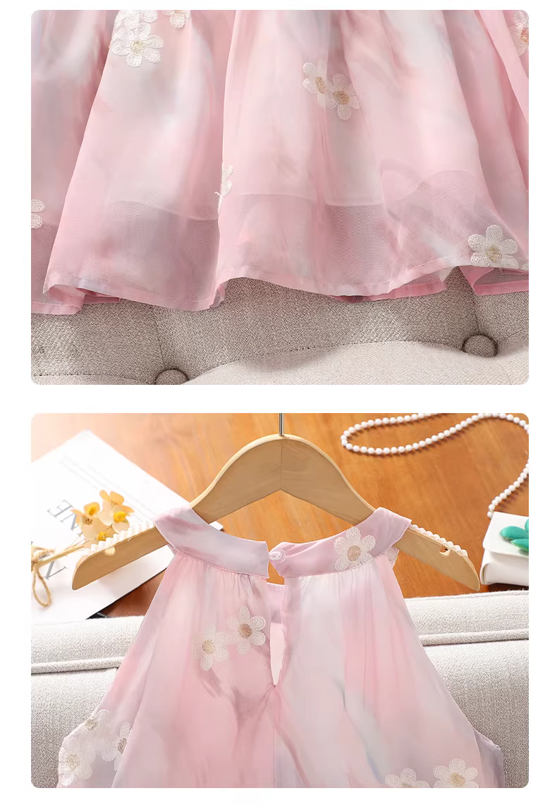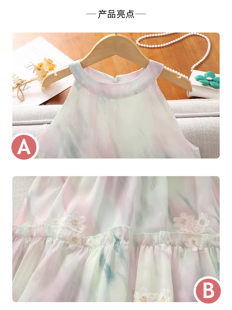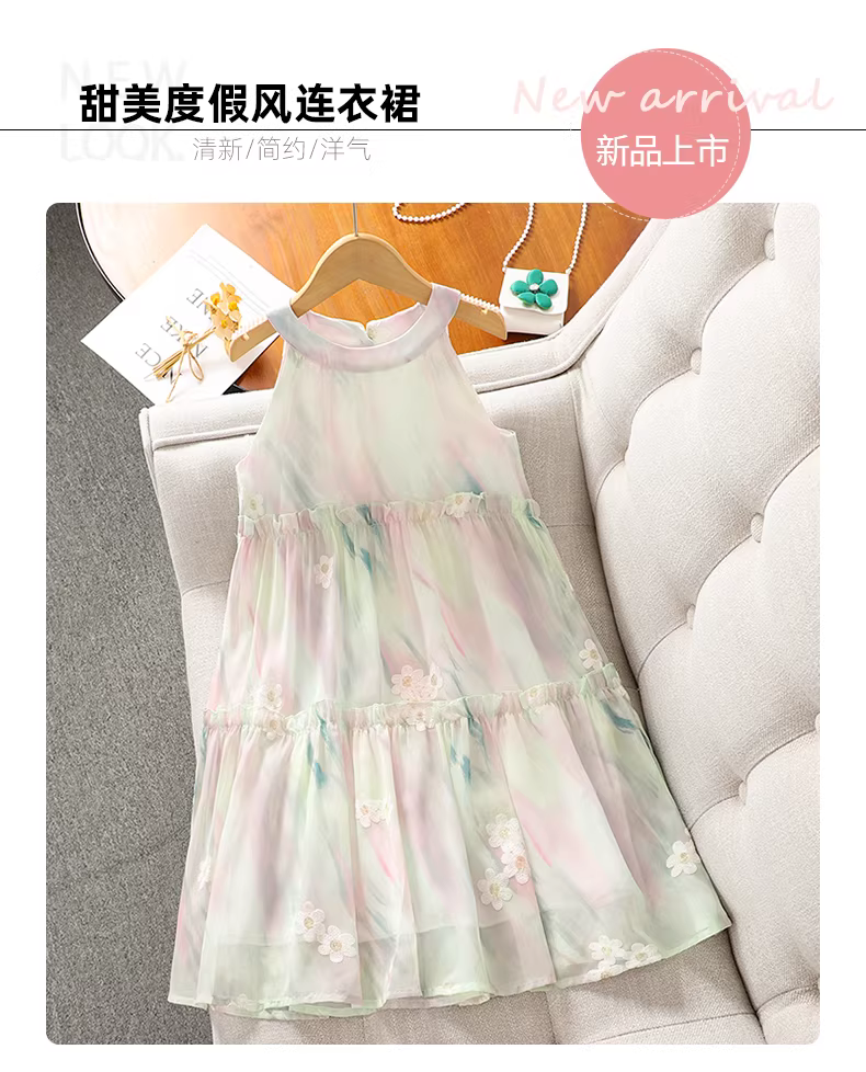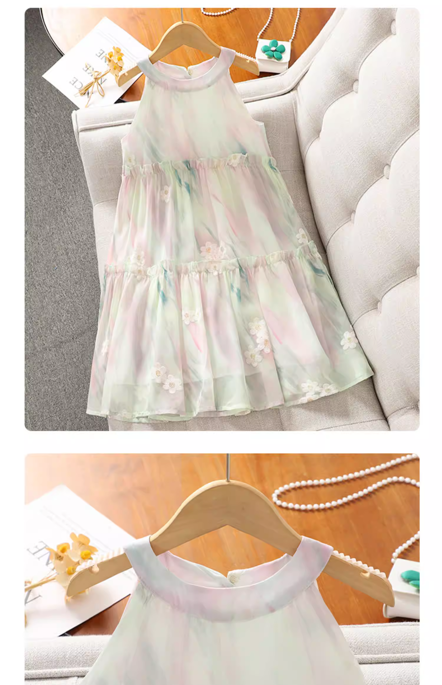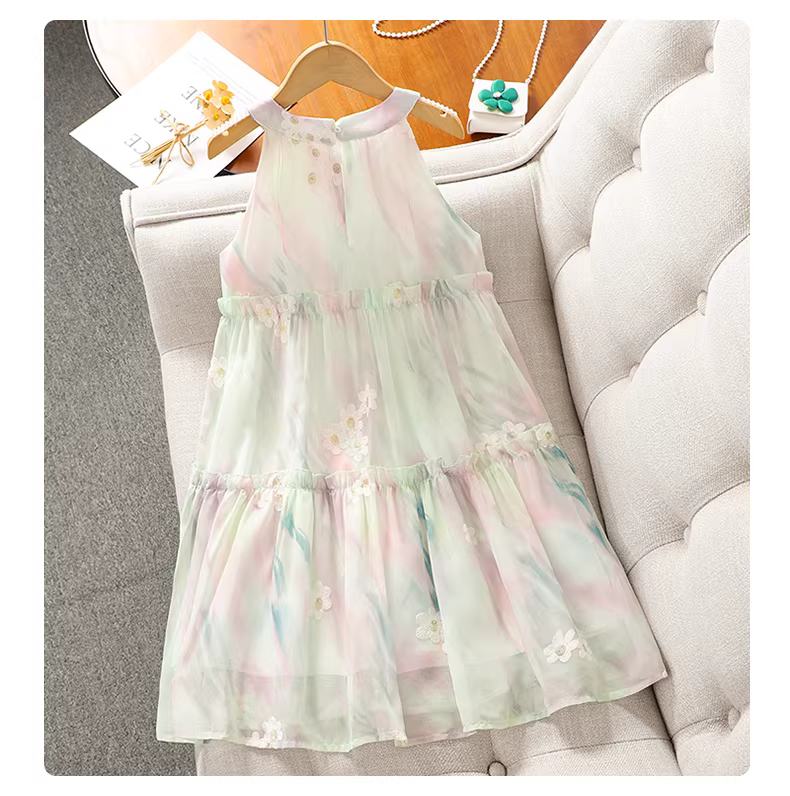 - Váy công chúa bé gái cổ halter không tay kiểu mùa hè 2025, kiểu dáng mới đi nghỉ mát, váy đi biển, váy cho bé gái lớn