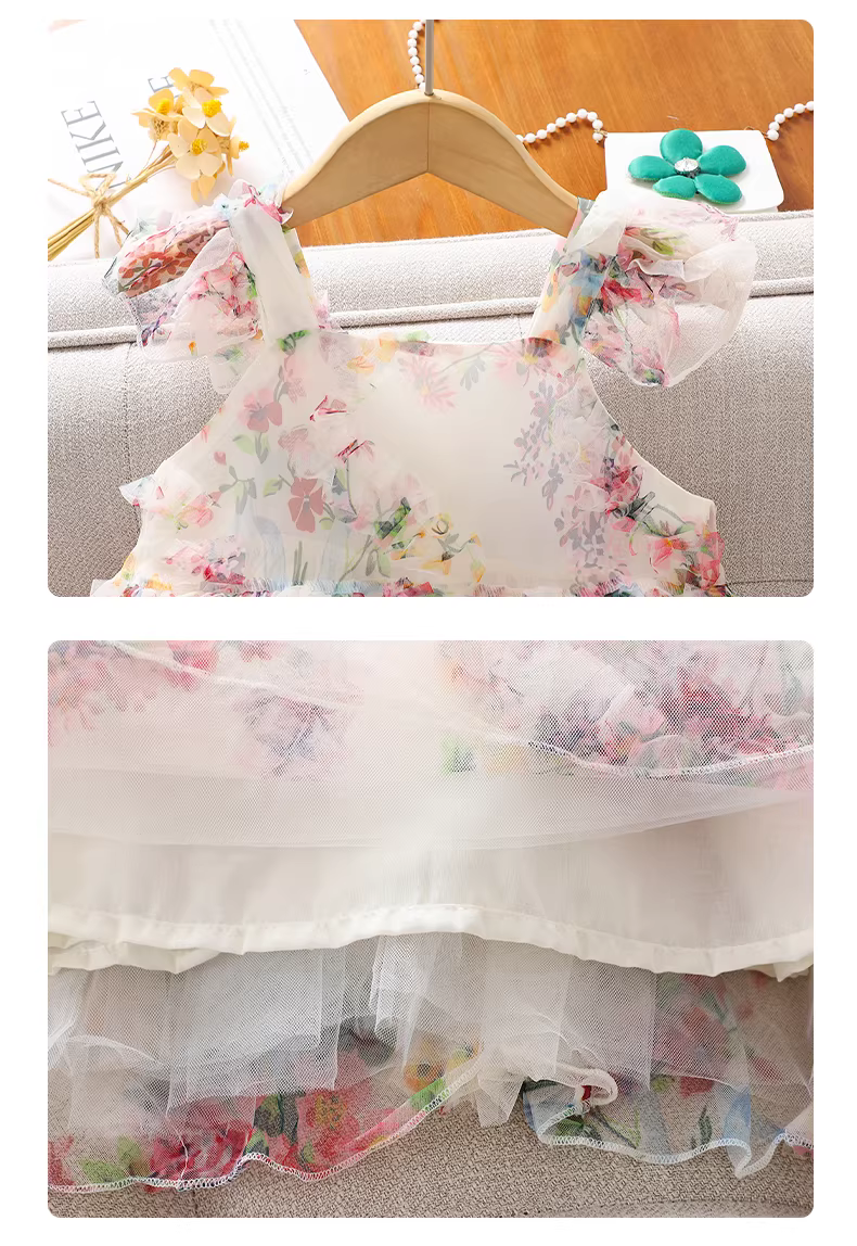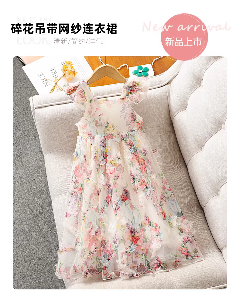- Váy dây hoa mùa hè cho bé gái, váy công chúa ngọt ngào thời trang cho bé gái, quần áo trẻ em mới, váy lưới