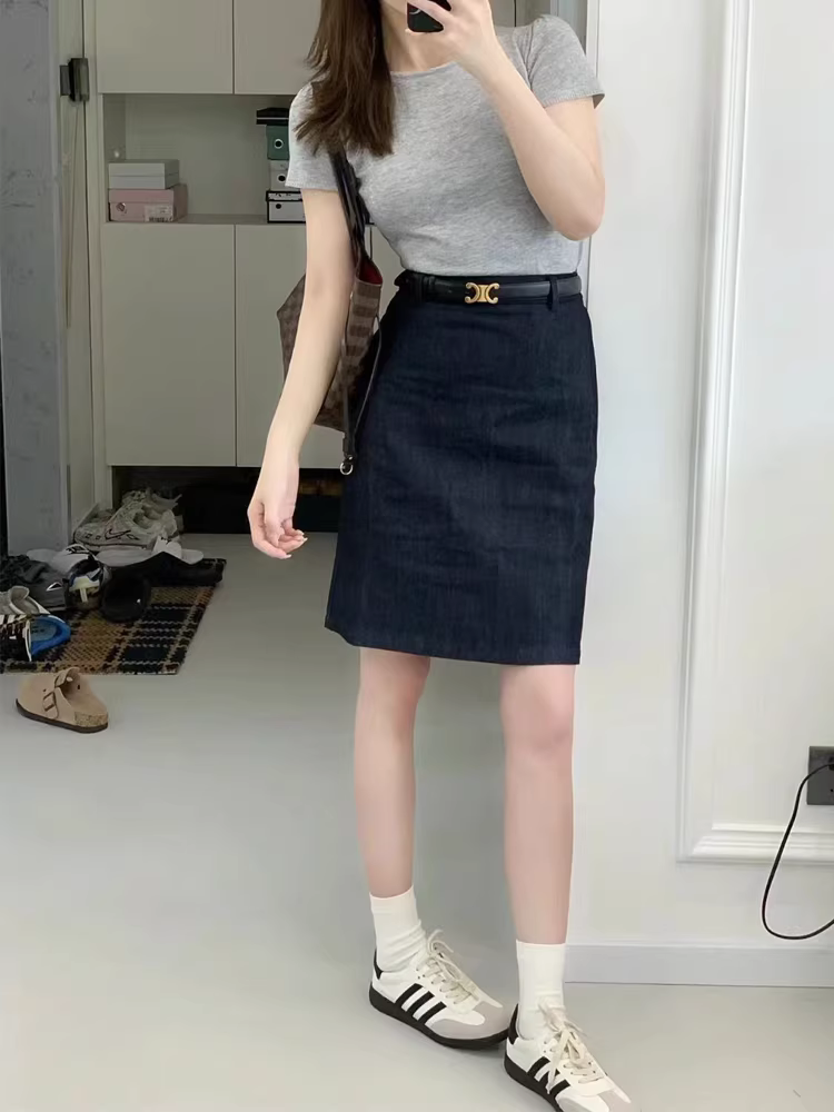 Váy denim dáng lê dành cho nữ, size lớn mùa hè, lưng cao, tôn dáng, đơn giản, đa năng, kiểu dáng chữ A, váy midi.