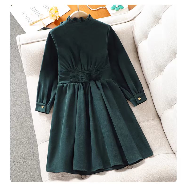 - Váy đỏ cho bé gái mùa thu đông 2025, trang phục Tết cho bé gái, váy lót lông cừu cho trẻ em, trang phục chào mừng Tết lễ hội.