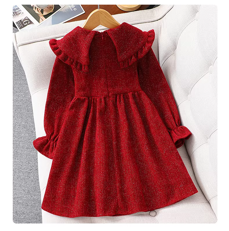 - Váy đỏ cho bé gái, quần áo thu đông, quần áo năm mới lót lông cừu cho trẻ em, quần áo năm mới cho bé gái, váy nhung trẻ em