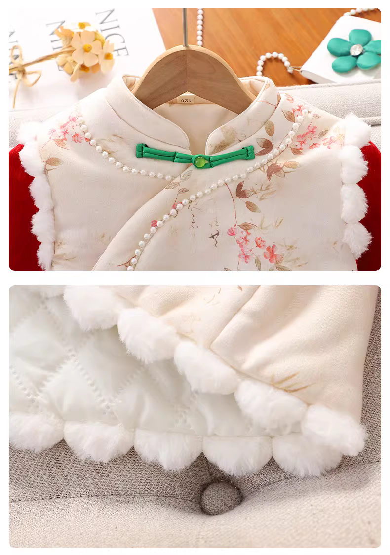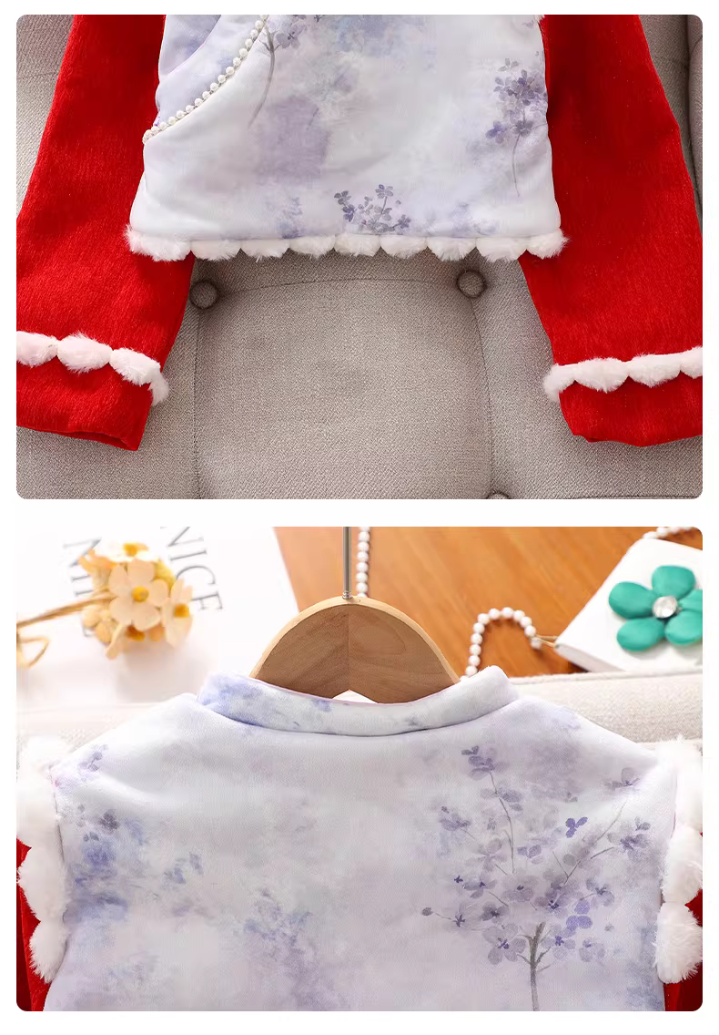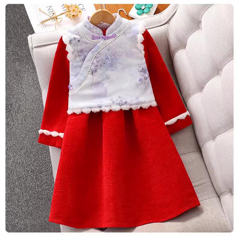 - Váy Hanfu cho bé gái, kiểu mới thu đông 2025, quần áo trẻ em, trang phục Tết lót lông đỏ, váy Tang phục cho bé gái lớn.