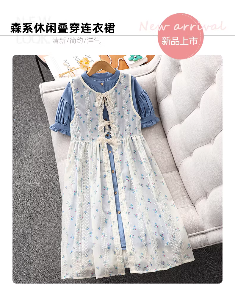 - Váy hè bé gái 2025 kiểu mới, đầm sơ mi tay bồng cho bé gái lớn, áo kiểu hè trẻ em, đầm đi biển