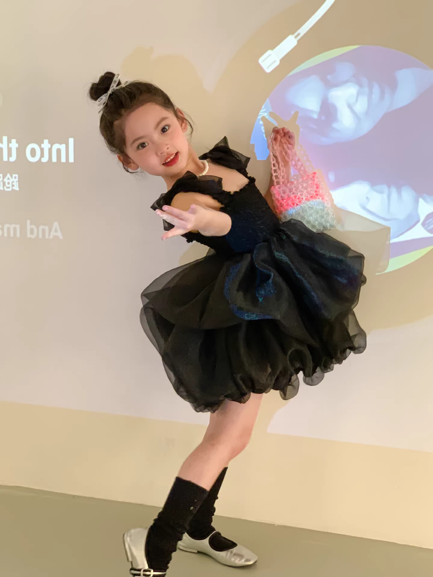 - Váy hè bé gái, trang phục công chúa đen trẻ em, mẫu mới 2025, kiểu dáng thời trang cao cấp, váy bồng bềnh thời thượng cho bé