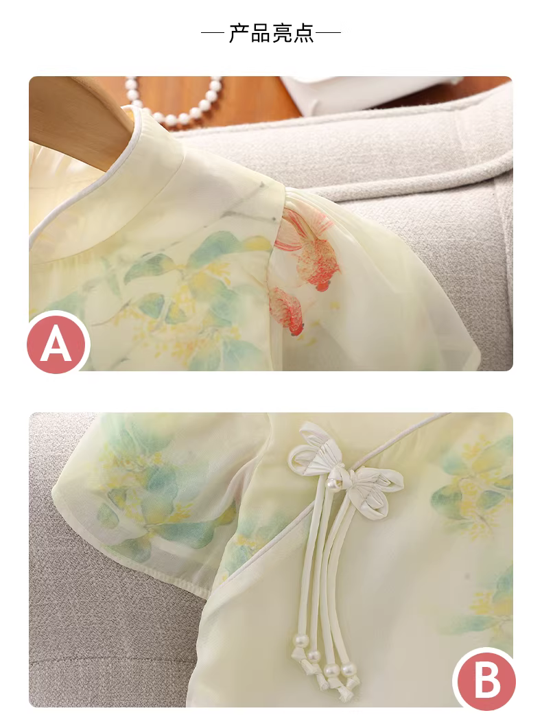 - Váy hè cho bé gái 2025 kiểu mới, phong cách Trung Hoa, Hanfu, cheongsam, chất liệu chiffon, váy công chúa cho bé gái lớn