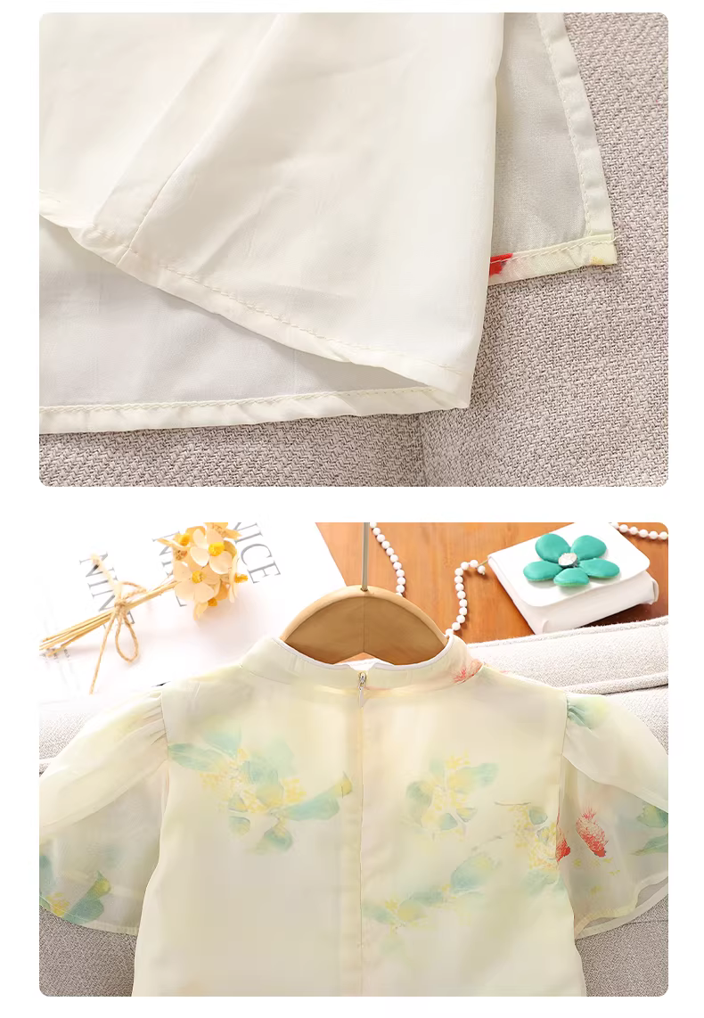 Váy hè cho bé gái 2025 kiểu mới, phong cách Trung Hoa, Hanfu, cheongsam, chất liệu chiffon, váy công chúa cho bé gái lớn