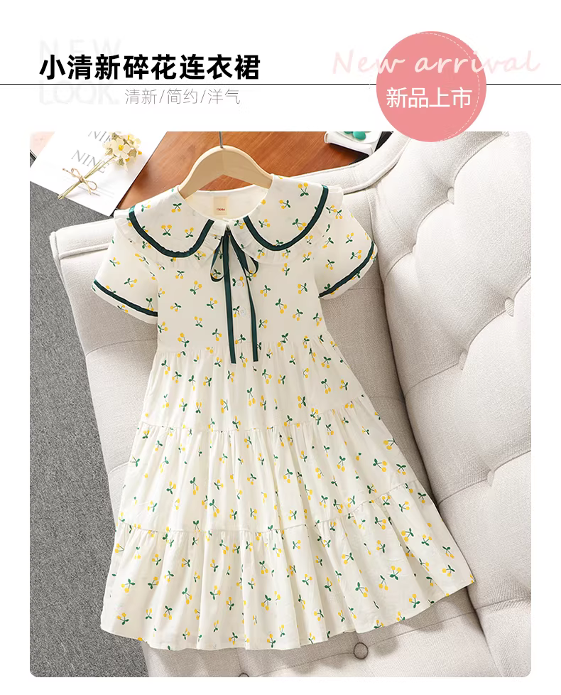 Váy hoa cho bé gái, kiểu dáng mỏng mùa hè, váy preppy cho trẻ em, váy mùa hè cotton nguyên chất cho bé gái, váy công chúa cho trẻ lớn