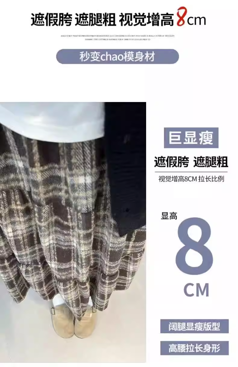 - Váy len kẻ sọc cho nữ, mùa thu đông, cỡ lớn, lưng cao, che hông, giảm béo, dáng quả lê, váy chữ A dài vừa phải