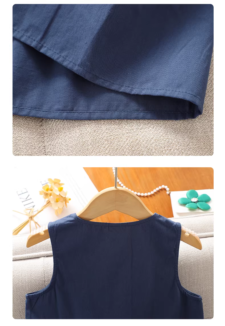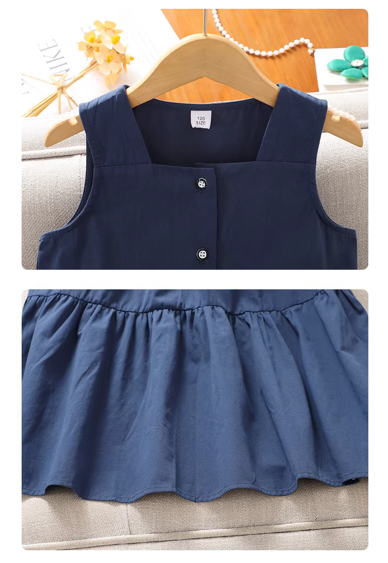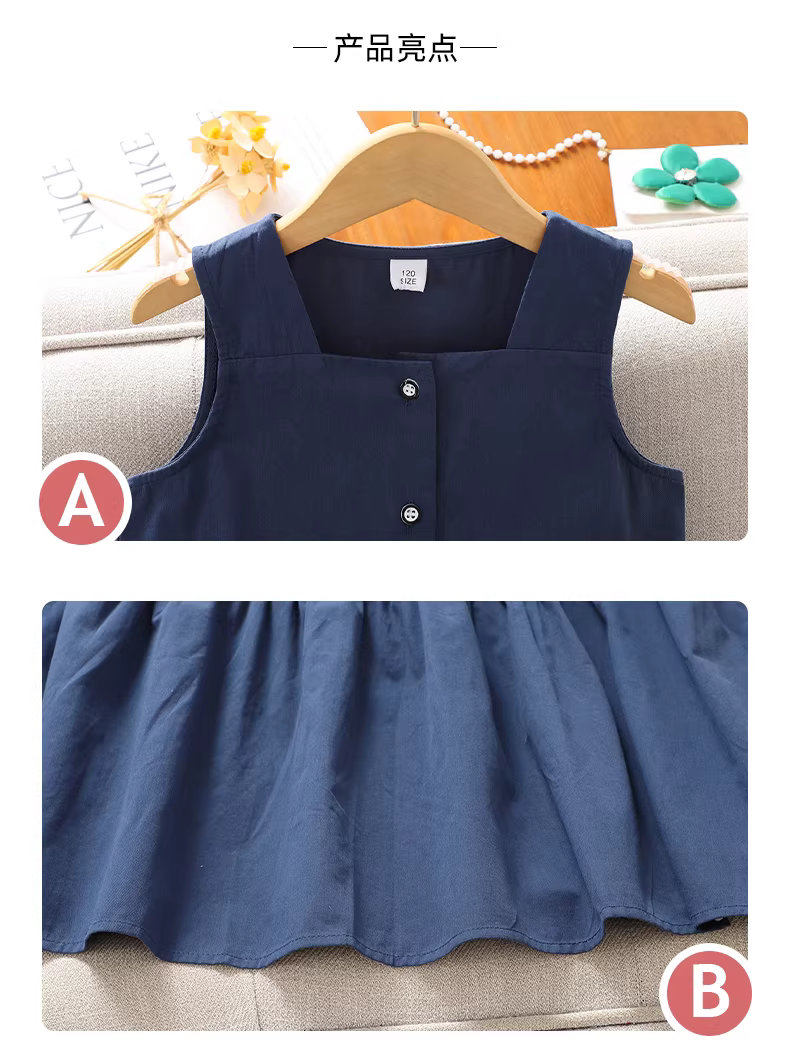 - Váy liền thân không tay mùa hè 2025 kiểu mới cổ vuông dây đeo cho bé gái lớn, váy công chúa mùa hè thường ngày