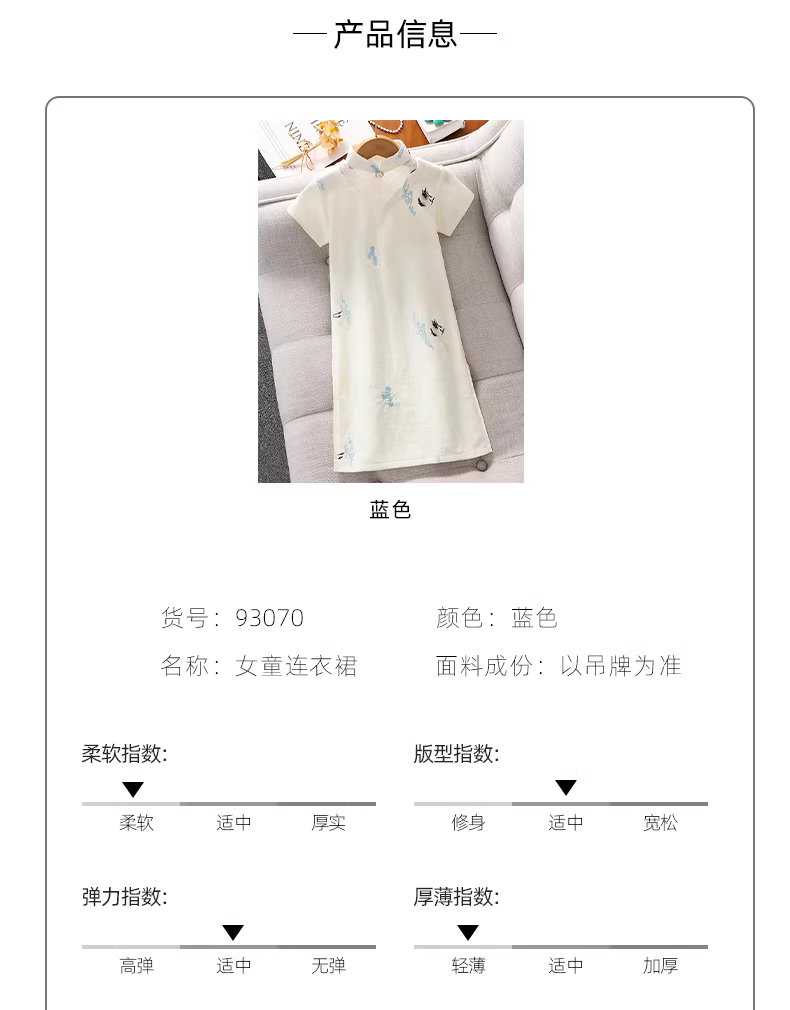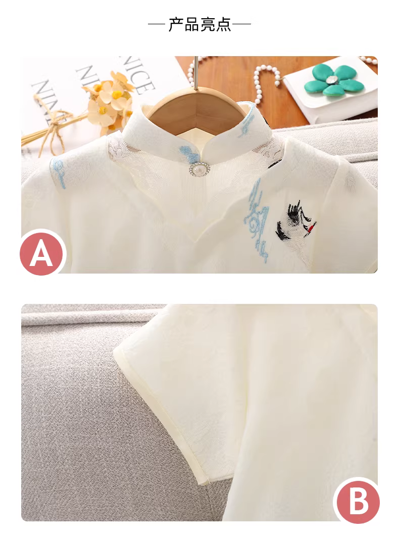 Váy mùa hè kiểu sườn xám cải tiến theo phong cách Trung Hoa dành cho bé gái, váy ren kiểu Trung Hoa mới dành cho trẻ em, váy Hanfu mỏng mùa hè dành cho bé gái