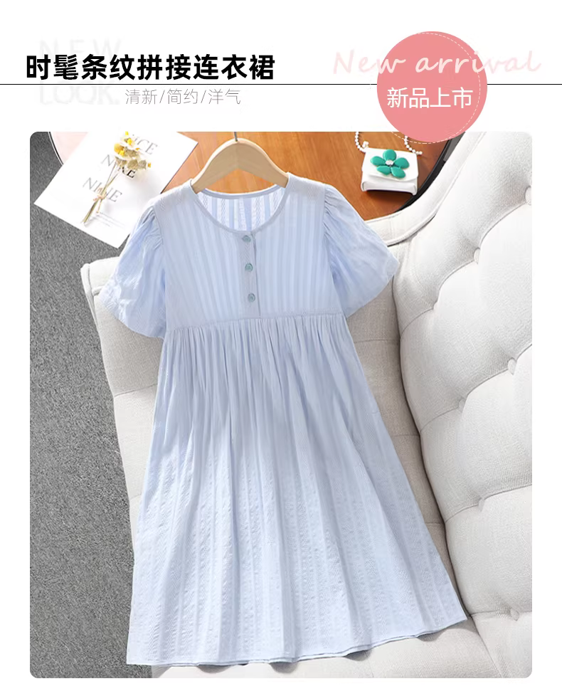 - Váy mùa hè rộng rãi cho bé gái, váy cotton nguyên chất sọc chắp vá phong cách Nhật Bản, váy chữ A ngắn tay nghệ thuật cho bé gái lớn