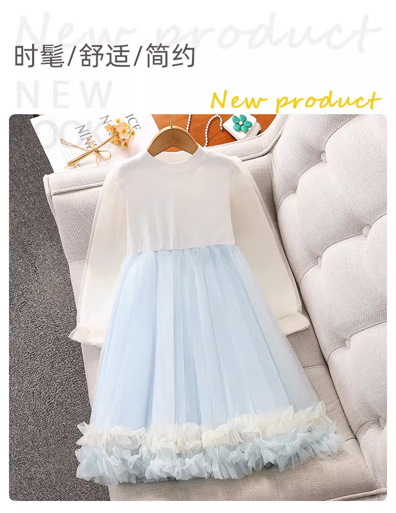 - Váy thu đông bé gái 2025, quần áo trẻ em mới, váy tutu lưới cho bé gái lớn, lớp lót mùa thu đông, váy công chúa