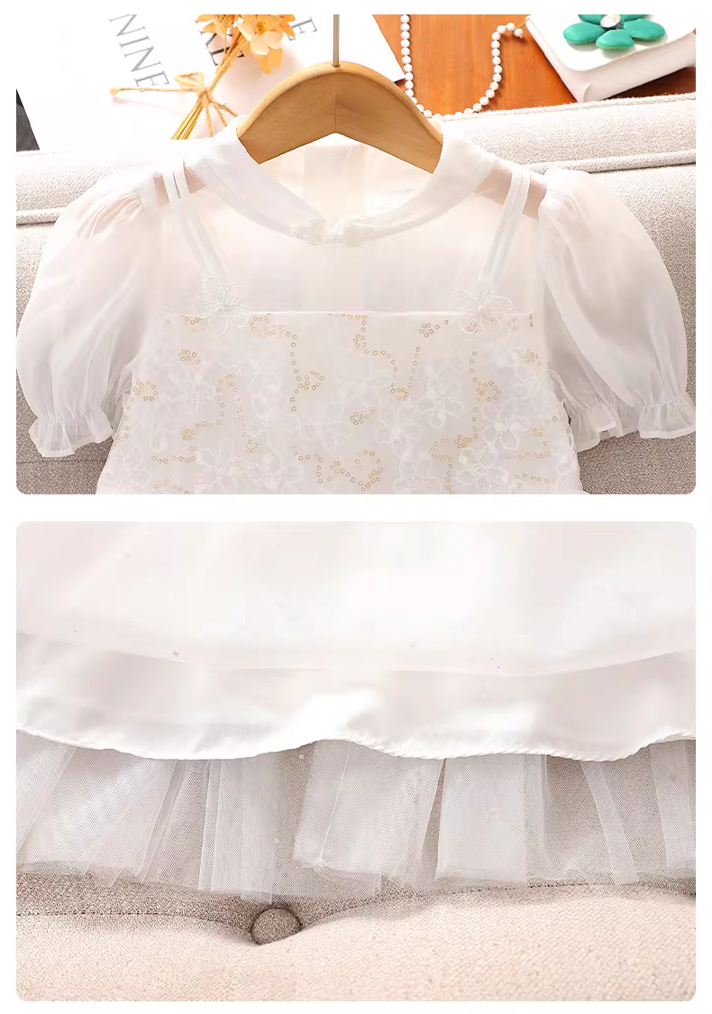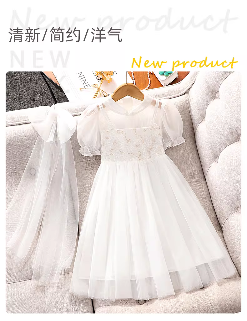 - Váy trắng mùa hè cho bé gái 2025 kiểu mới, váy lưới cho bé gái lớn, quần áo trẻ em, váy công chúa mùa hè