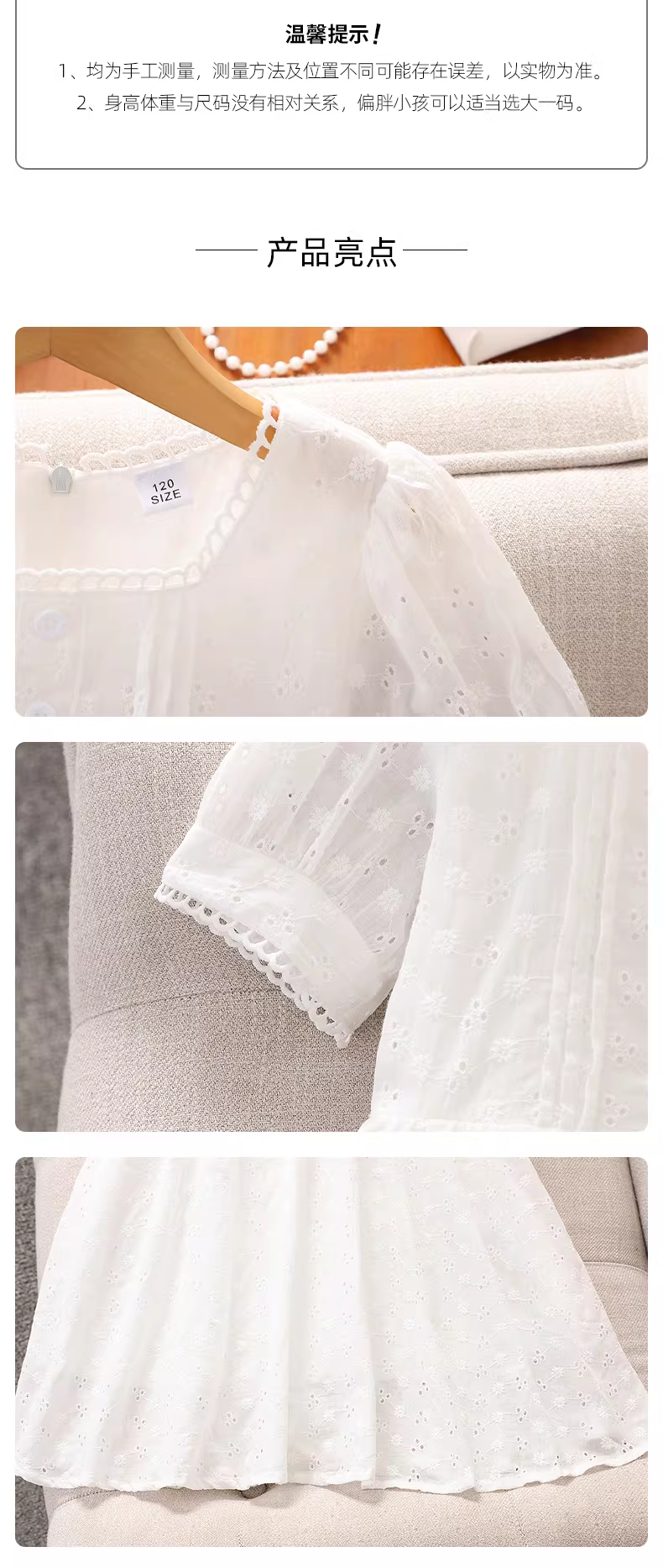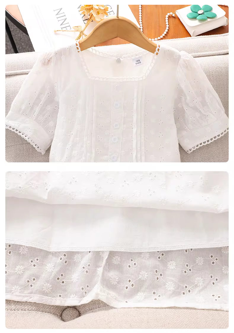 - Váy voan bé gái, váy hè 2025, váy trắng ngắn tay trẻ em mới, váy công chúa Pháp mùa hè cho bé gái