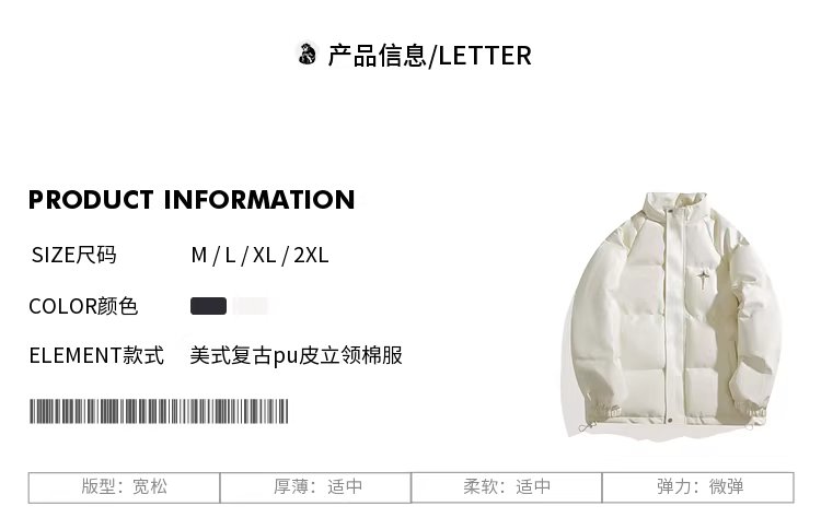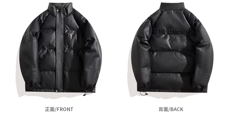 Wukong có sẵn áo khoác nam chất liệu da PU trắng kiểu Mỹ, áo khoác phao cổ đứng mùa đông 2025, áo khoác cotton dày dặn thời trang thương hiệu nổi tiếng.
