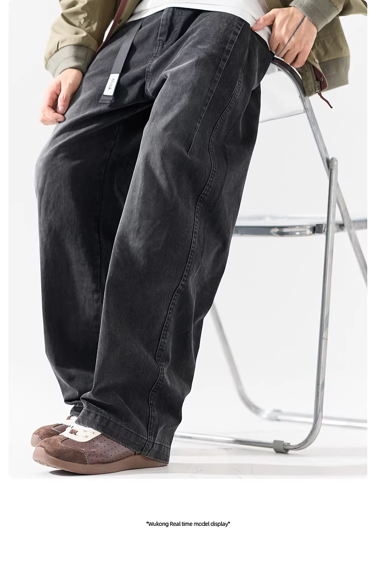 Wukong có sẵn quần cargo kiểu Nhật Bản chất liệu cotton nguyên chất đã qua xử lý, kiểu dáng vintage, dành cho nam, có dây lưng điều chỉnh, quần ống rộng, phong cách thường ngày.