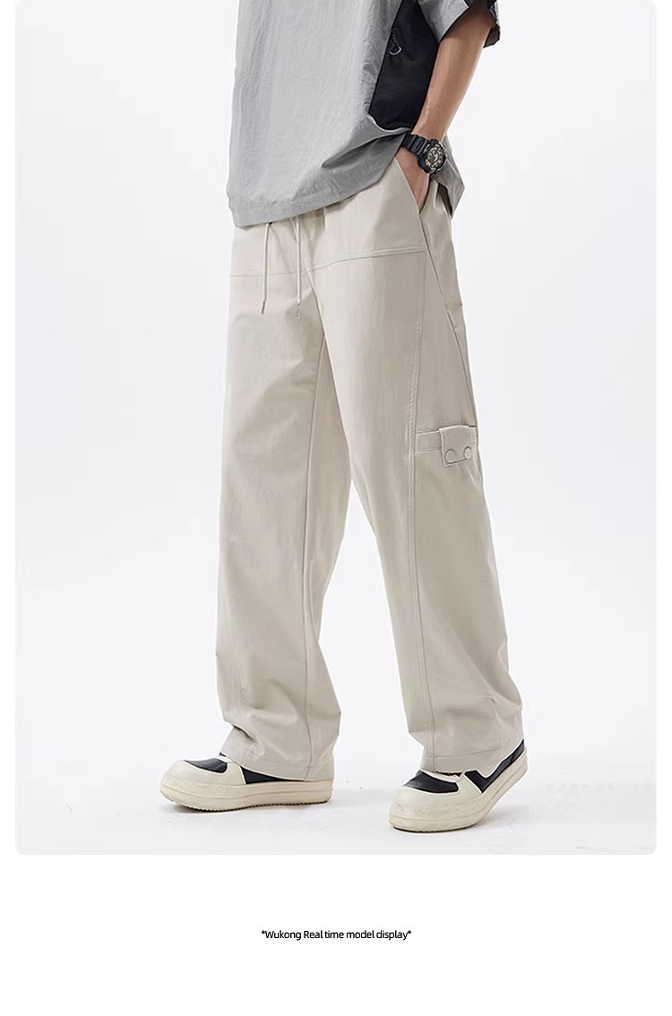 - Wukong có sẵn quần cargo ống thẳng kiểu Nhật cổ điển dành cho nam, quần mùa xuân dáng rộng đa năng màu trơn có dây rút, phong cách thường ngày.