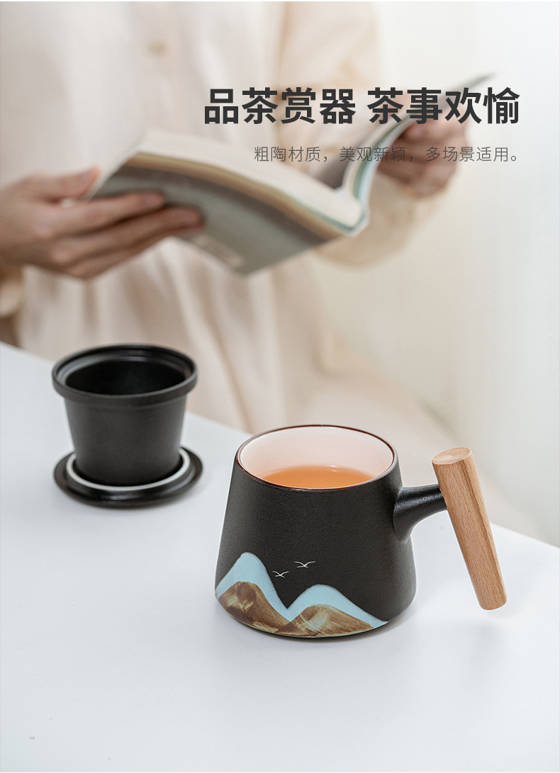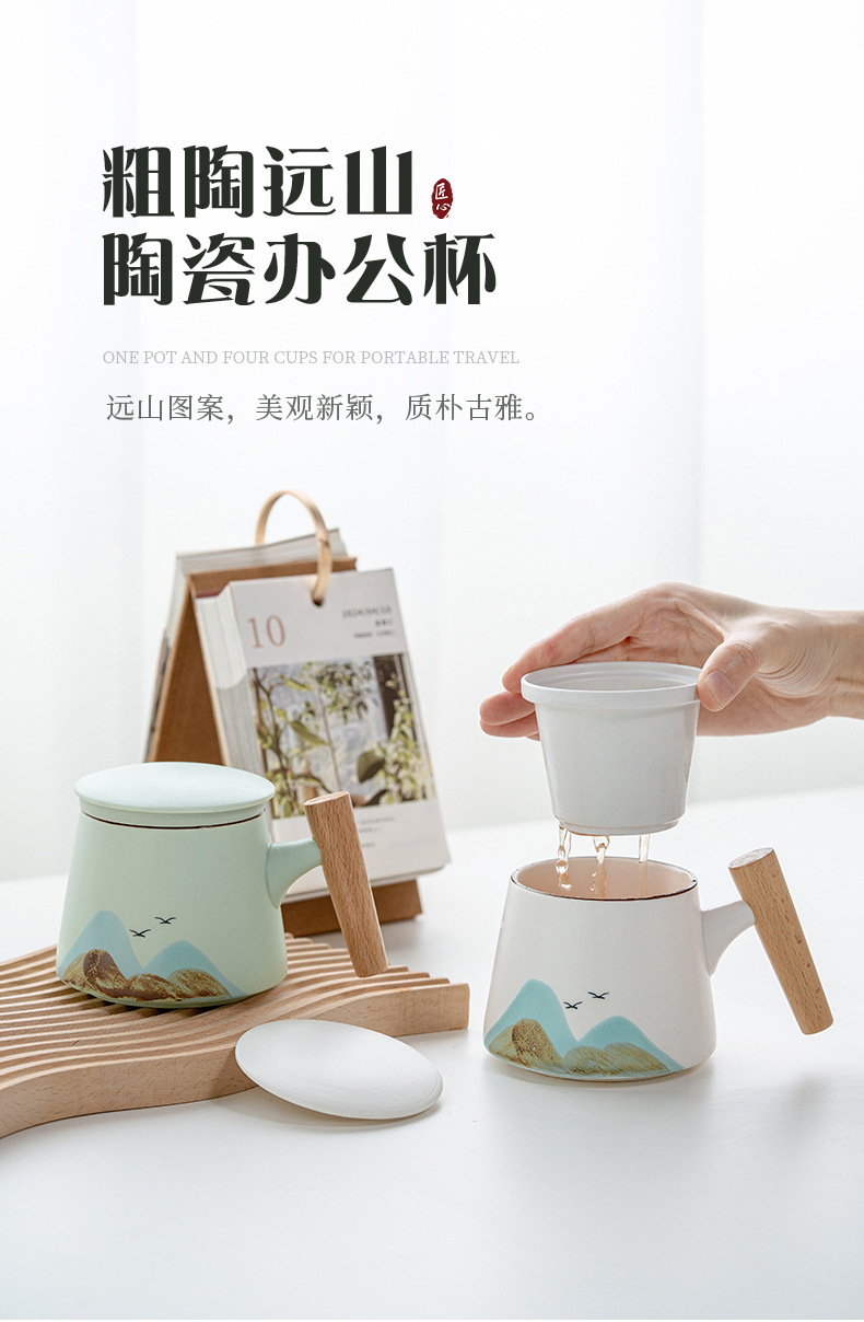 - Qianli Jiangshan gốm cốc trà gốm thô Yuanshan tách trà cốc văn phòng cốc hộp quà có sẵn