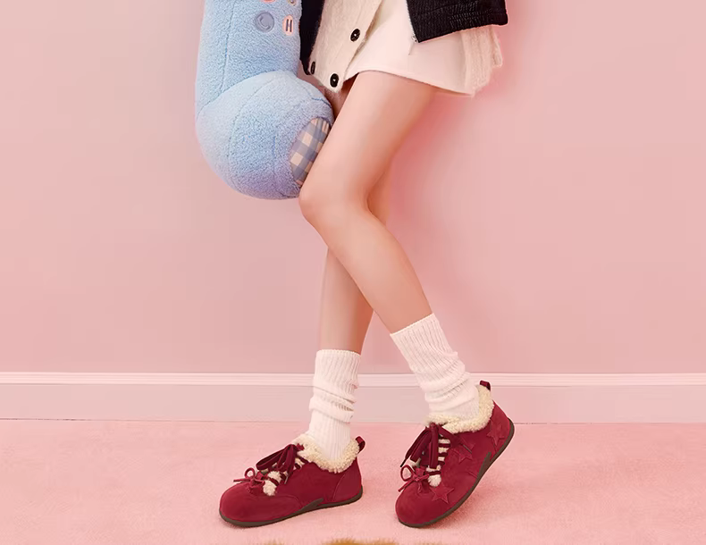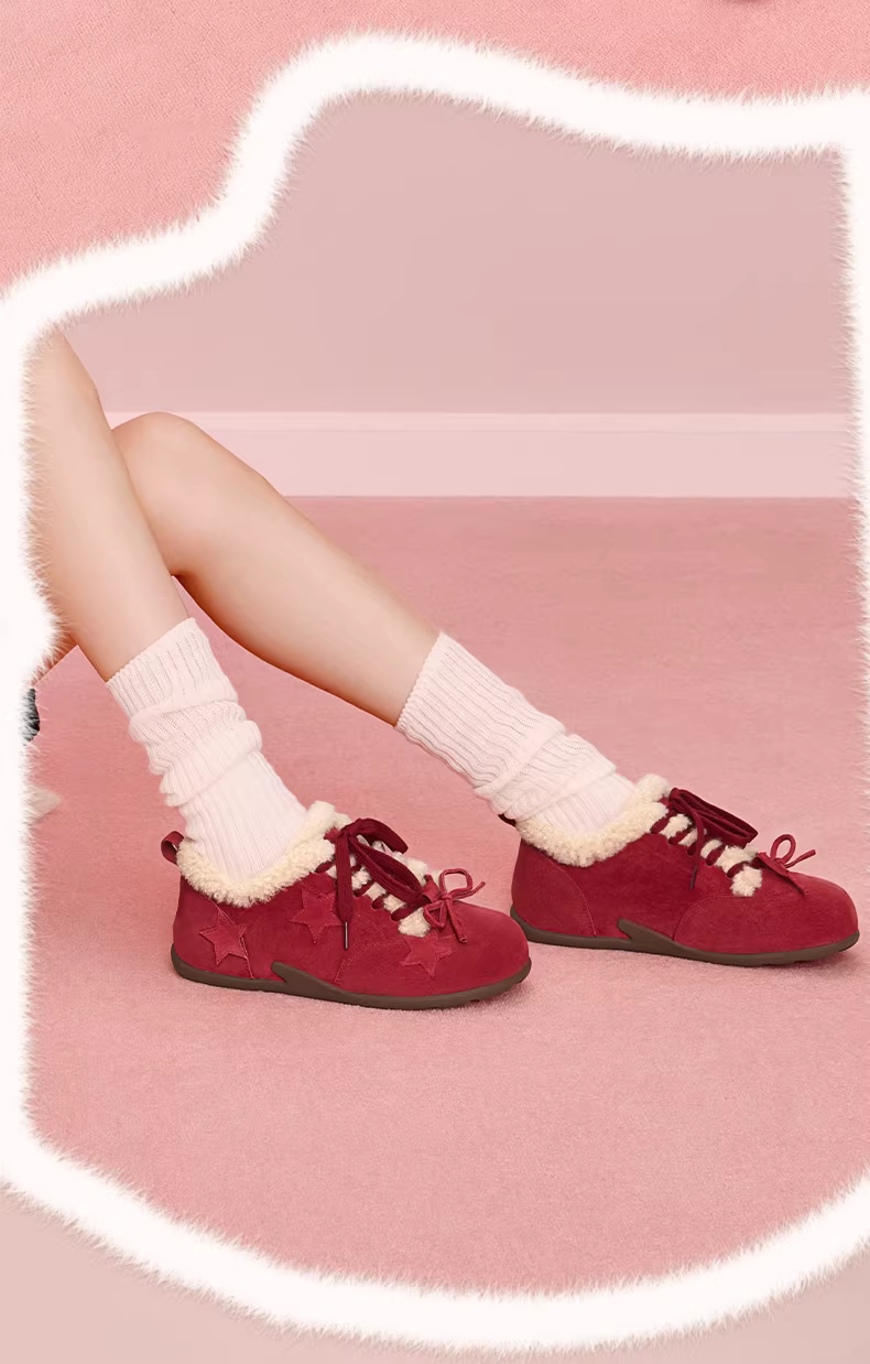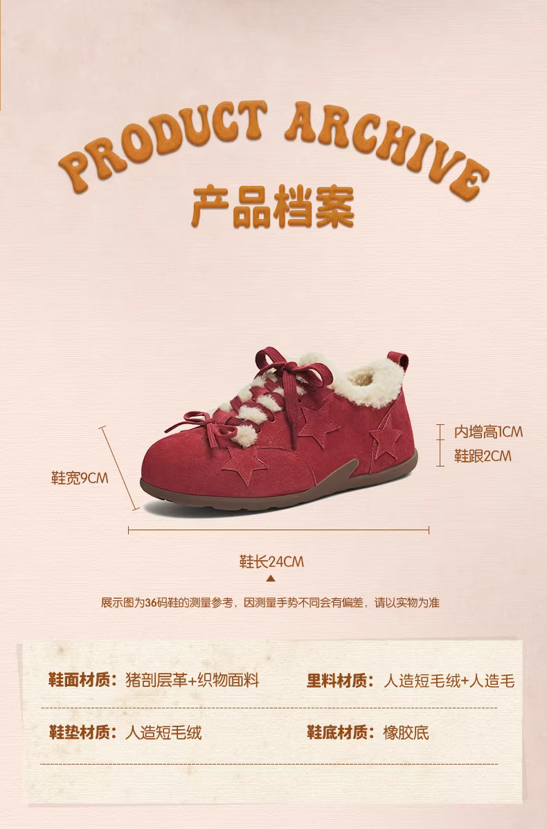 - [Quà tặng năm mới] Giày tập kiểu Đức màu đỏ lót nhung cổ điển Tianmeiyi, giày lông, giày thể thao thông thường dành cho nữ, mẫu mùa đông mới