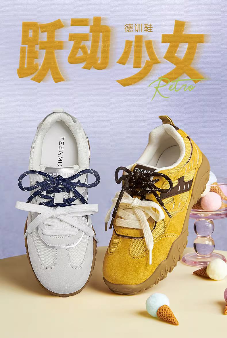 [Quà tặng năm mới] Giày tập luyện Agande đế dày màu vàng cổ điển lót lông cừu Tianmeiyi dành cho nữ, giày thể thao đế mềm mới