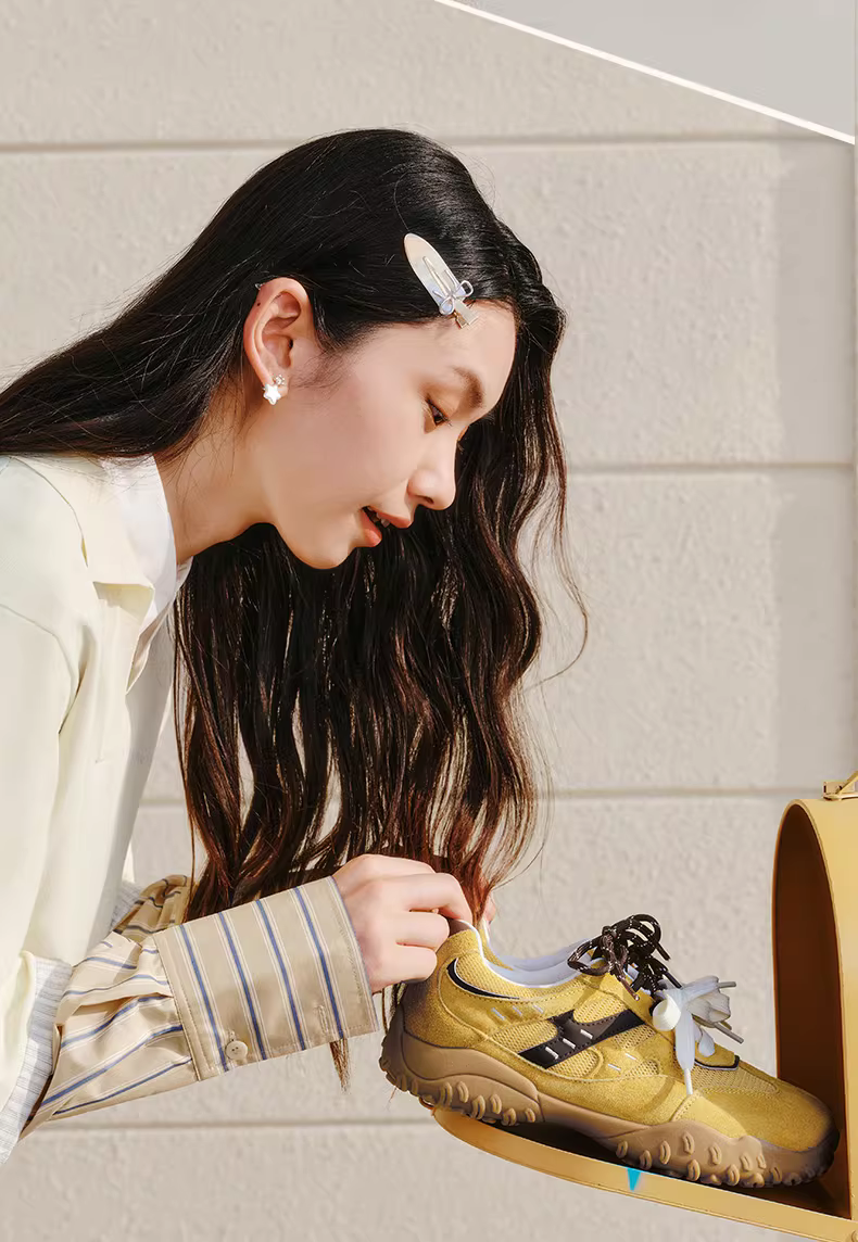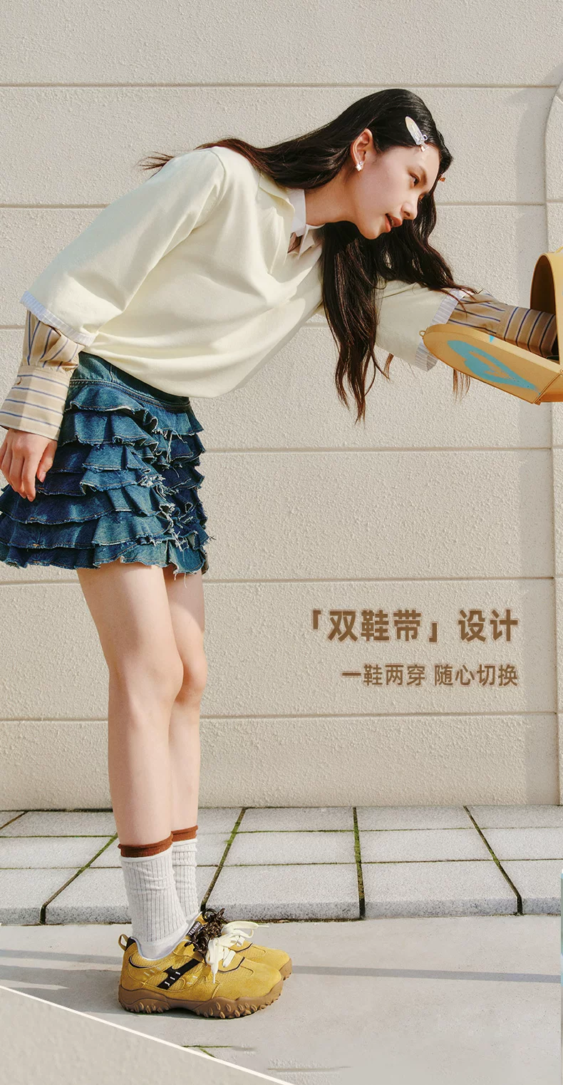 - [Quà tặng năm mới] Giày tập luyện Agande đế dày màu vàng cổ điển lót lông cừu Tianmeiyi dành cho nữ, giày thể thao đế mềm mới