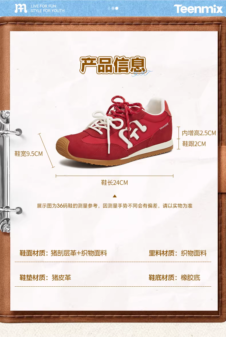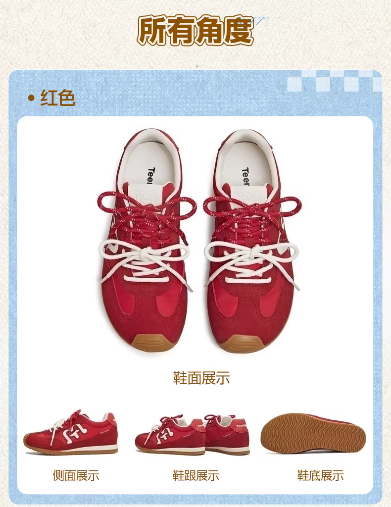 - [Quà tặng năm mới] Giày tập luyện Agande màu đỏ tăng chiều cao Tianmeiyi Giày thể thao đế mềm dành cho nữ Mẫu mới mùa xuân 2026