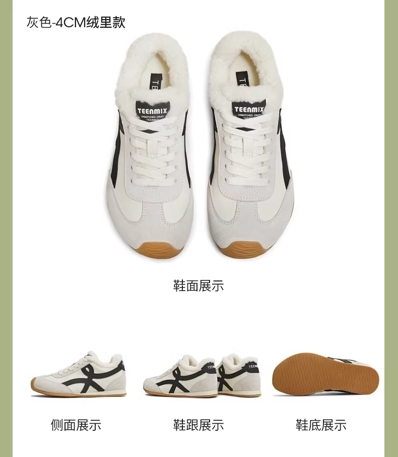 - [Quà tặng năm mới] Tianmeiyi Rainbow Sandwich Candy Giày tập luyện Agande có lót lông cừu tăng chiều cao bên trong Giày thể thao nữ