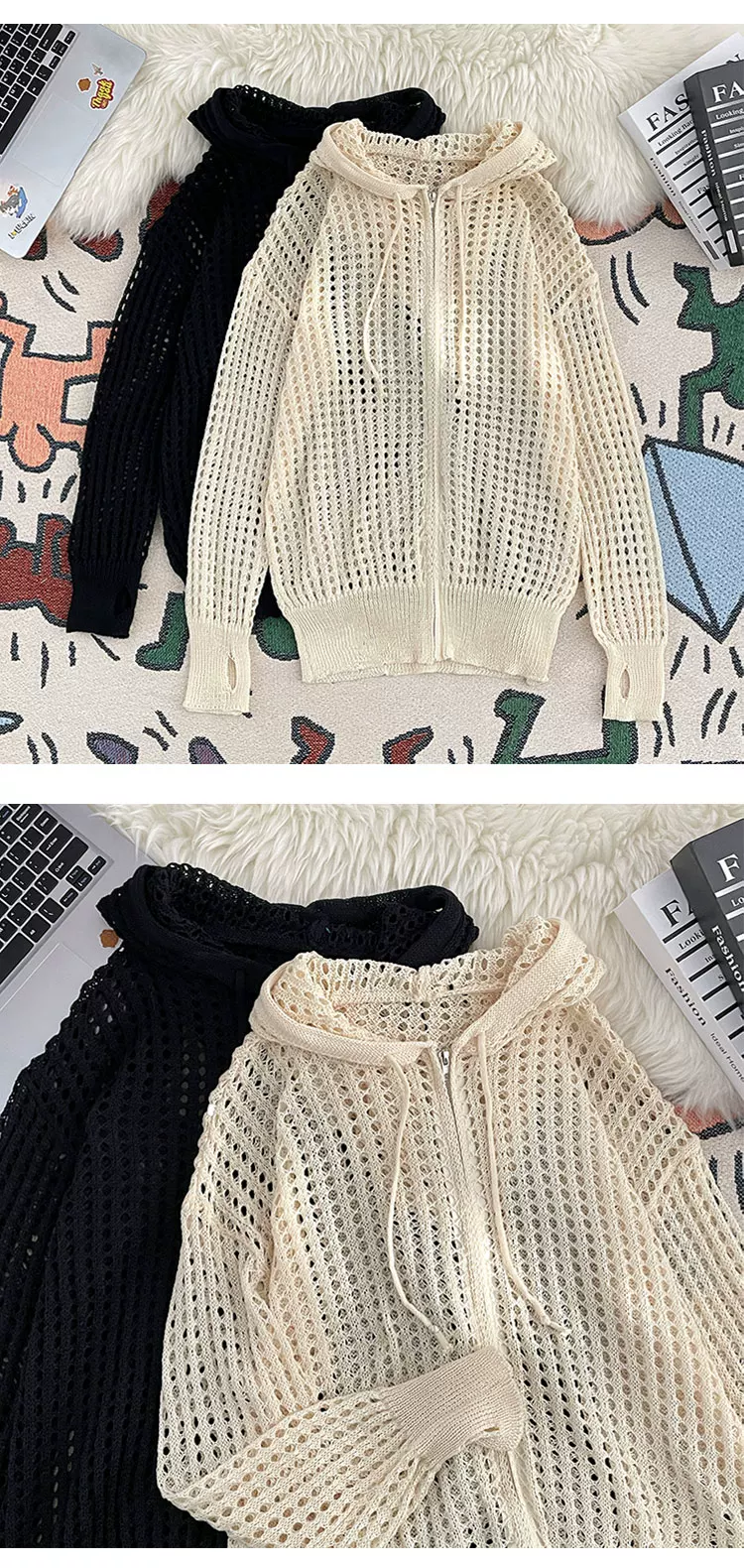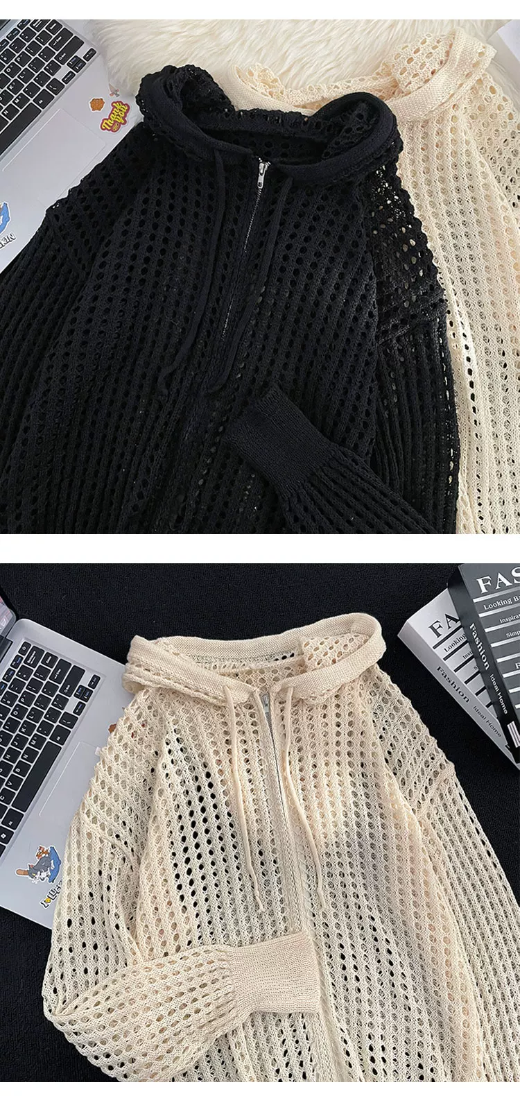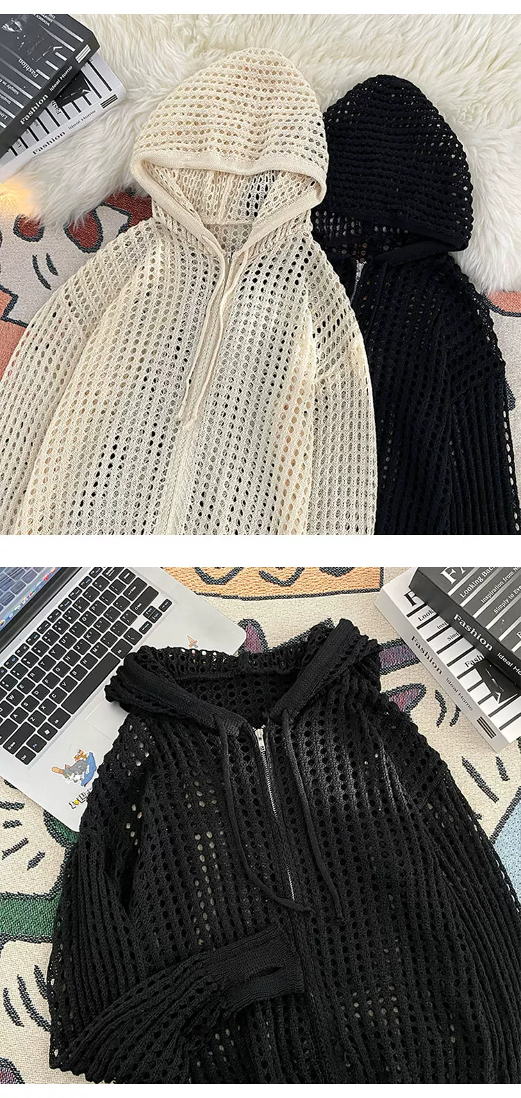 Quần áo chống nắng bằng vải lụa băng mát mẻ cho nam và nữ, áo dệt kim mỏng có mũ trùm đầu mùa hè, thiết kế rộng rãi hợp thời trang, áo khoác khoét lỗ.