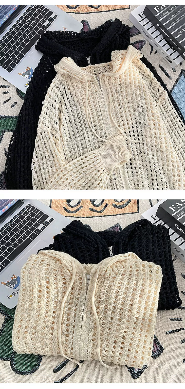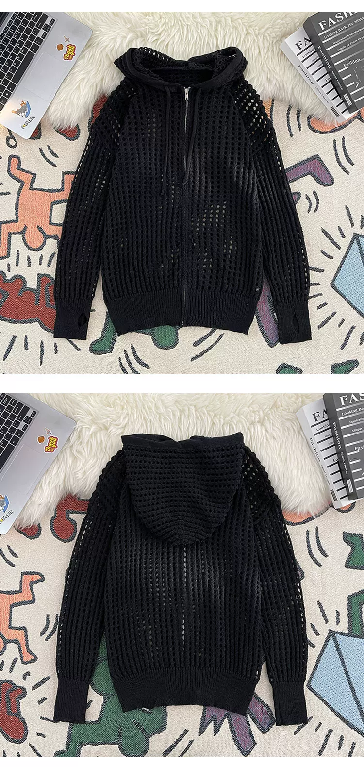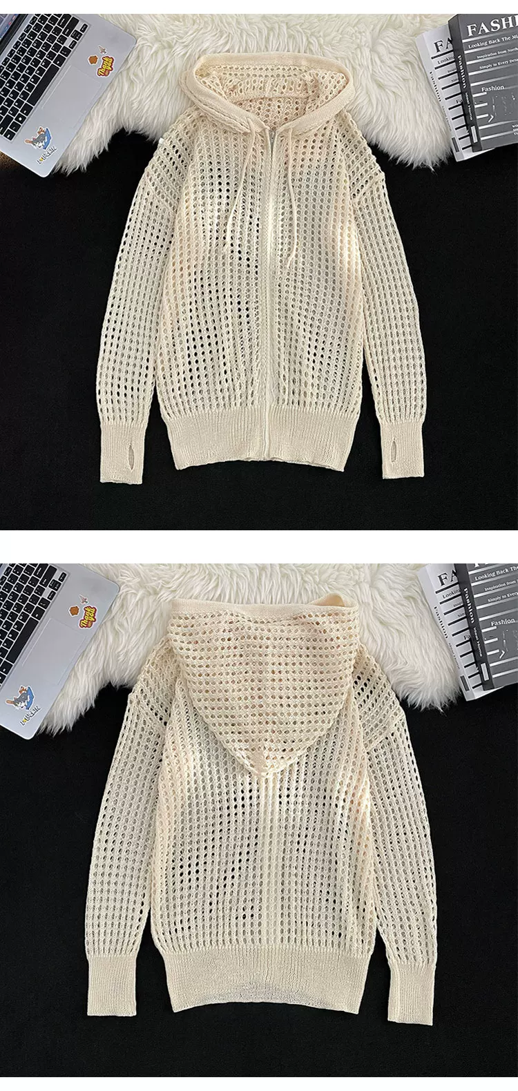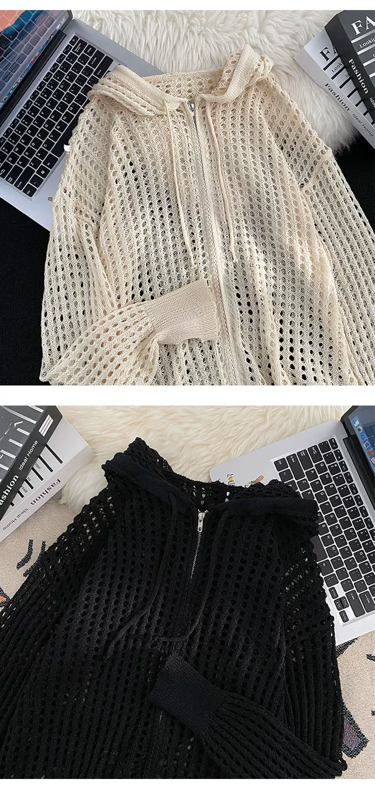 Quần áo chống nắng bằng vải lụa băng mát mẻ cho nam và nữ, áo dệt kim mỏng có mũ trùm đầu mùa hè, thiết kế rộng rãi hợp thời trang, áo khoác khoét lỗ.