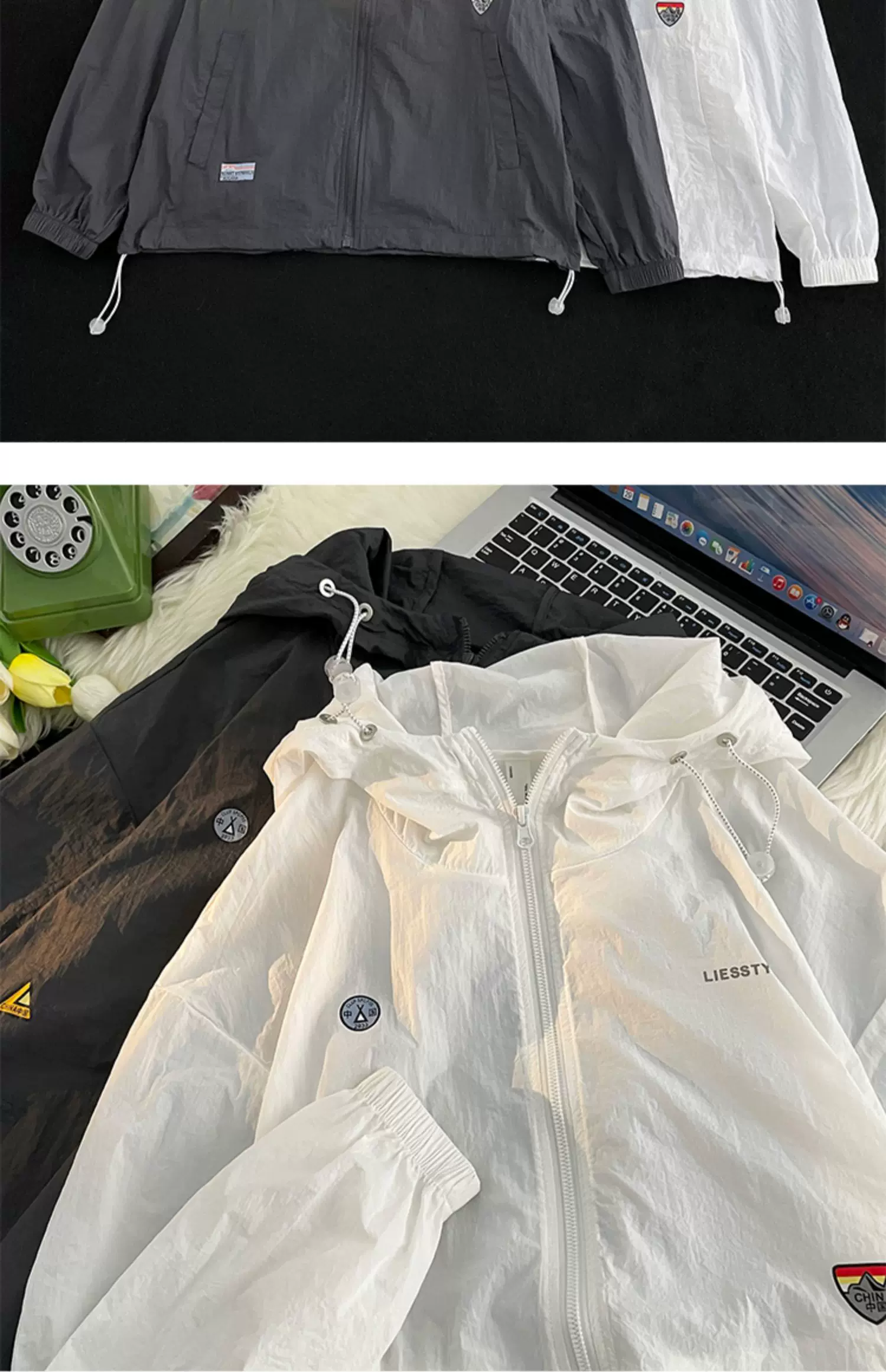 - Quần áo chống nắng vải lụa mát lạnh kiểu Mỹ dành cho nam và nữ, quần áo chống nắng mỏng hợp thời trang mùa hè, áo khoác chống tia UV đa năng cho cặp đôi